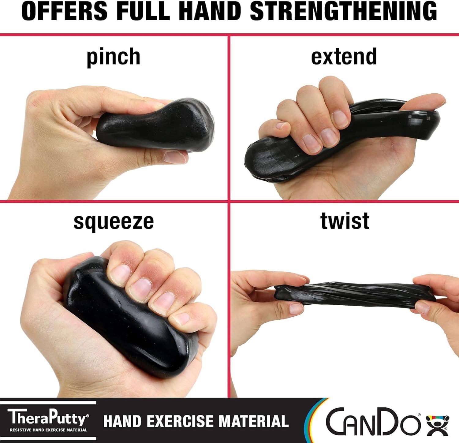 - STRENGTHEN YOUR HANDS - Squeeze, pinch, stretch or twist CanDo TheraPutty hand exercise material to strengthen hand muscles, improve fine motor skills, and decrease stress. Use to practice flexion, extension, press, pinch, and adduction exercises.