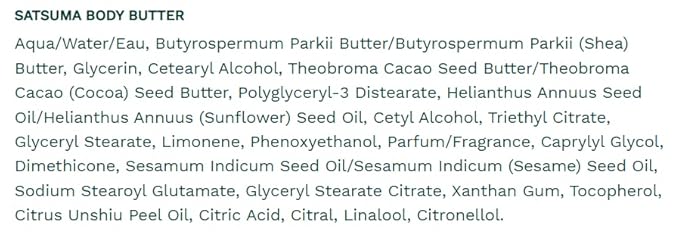 - Rich and moisturizing with a zesty zing: The rich texture and high fat content of shea butter makes this body butter intensely moisturizing, and satsuma oil gives it a zesty citrus zing