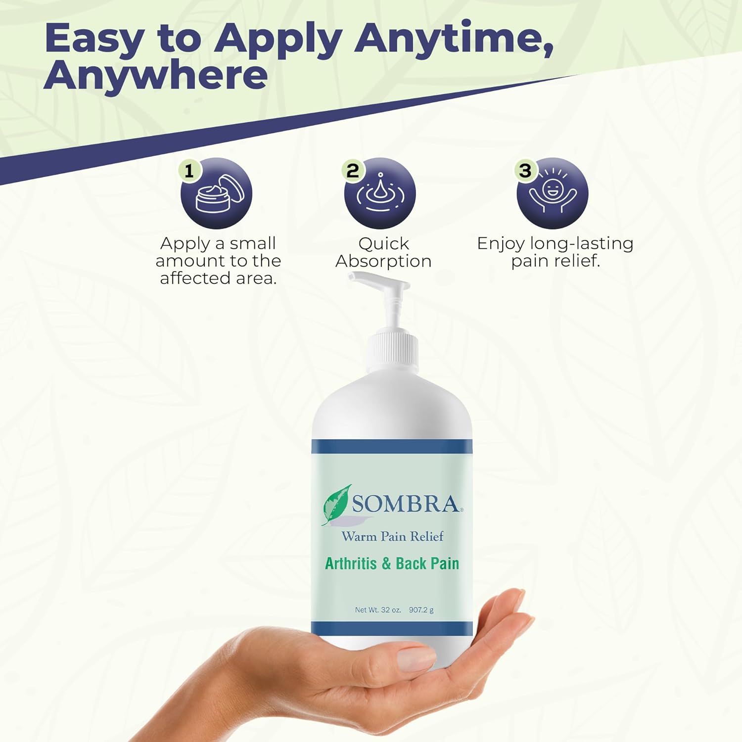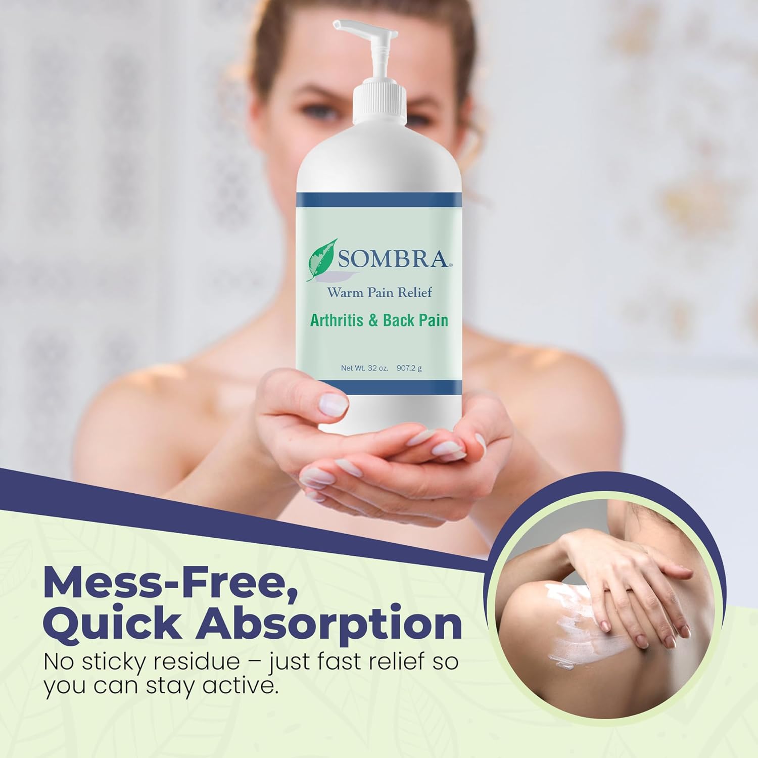 Sombra Warm Pain Relief Gel, Warm Relief for Arthritis and Chronic Pain Pre-Workout Muscle Rub Vegan Formula Free of Artificial Fragrances, Dyes, NSAIDs, Wax, Petroleum, Alcohol, 32oz Pump