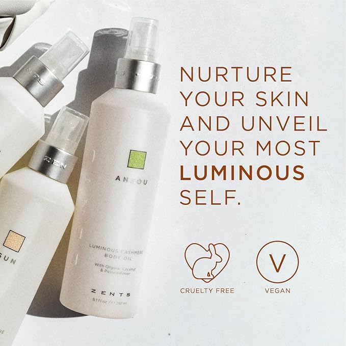 Zents Luminous Cashmere Body Oil (Mandarin Fragrance) | Moisturizing Body Oil with Vitamin E & Organic Coconut Oil | Softens & Smooths Skin | 8 fl oz