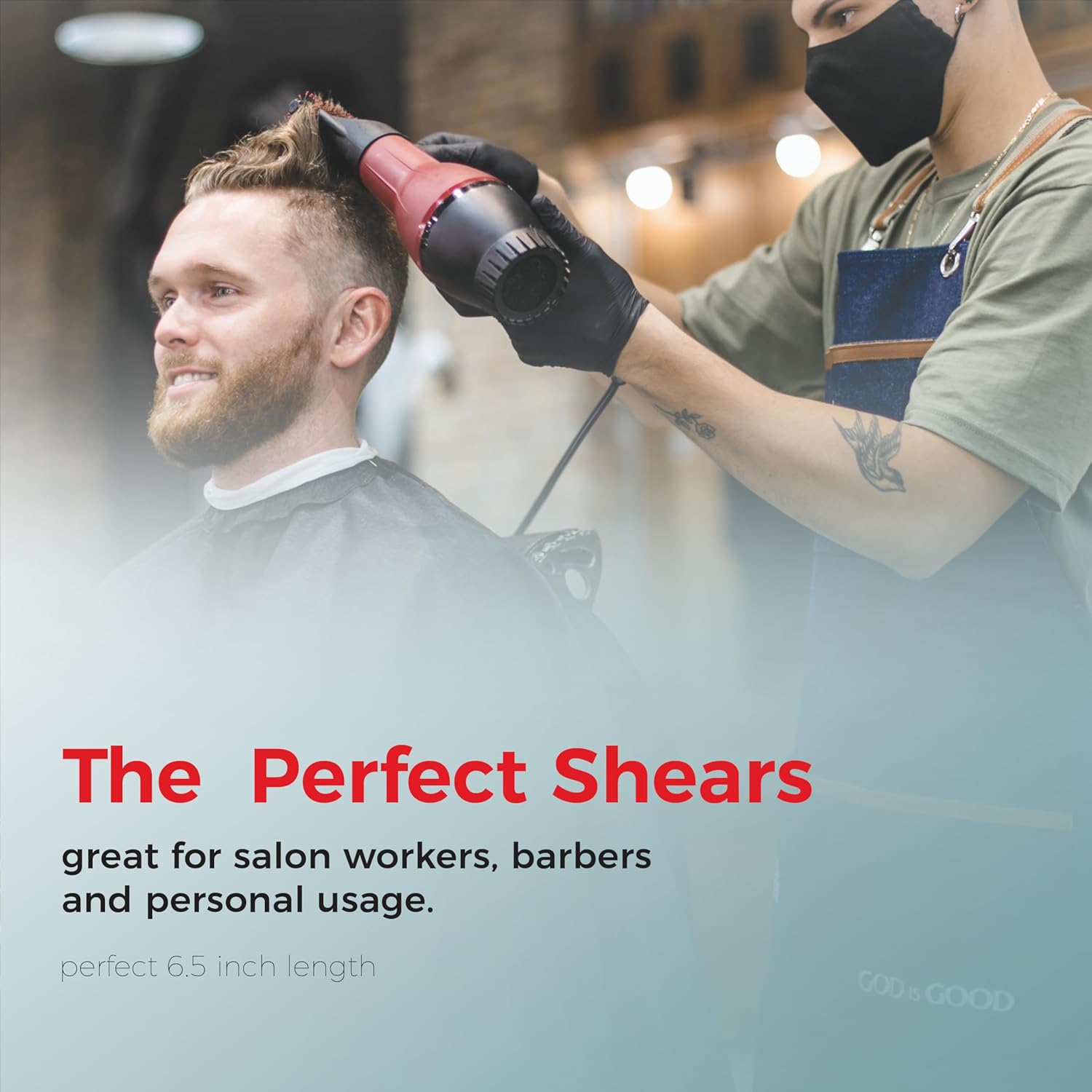 - ⭐ ACTIVE COLLABORATION WITH BARBERS: By collaborating with barbers & hairstylists, we've developed innovative designs and material selections focused on precision, sharpness, cutting efficiency, and minimizing hand & wrist strain in users. We are present at major beauty shows across America & Europe (UK) and gather valuable feedback from professionals that fuels our commitment to creating the most effective & user-friendly hair scissors set.