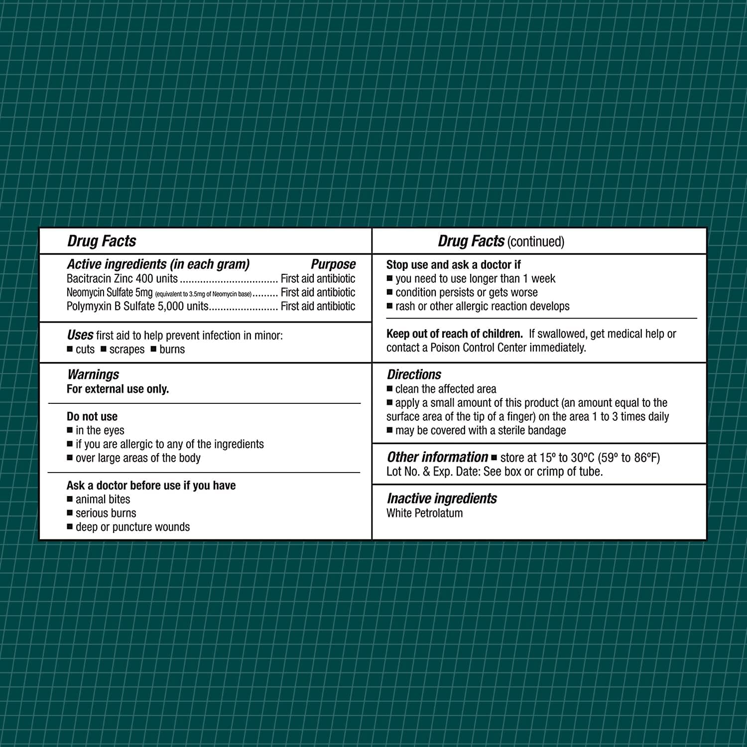 - FIRST AID ANTIBIOTIC OINTMENT for the prevention of infections in minor cuts, scrapes and burns.