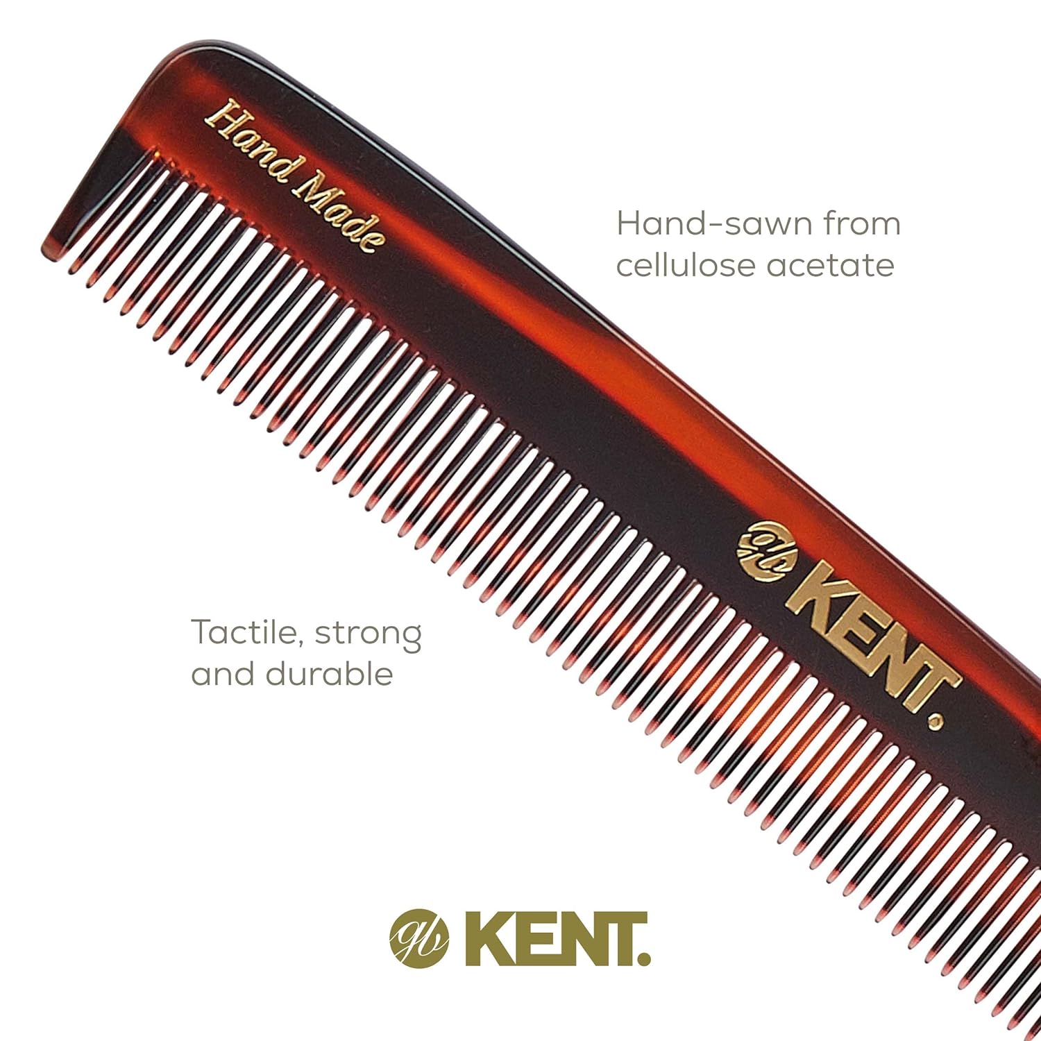 - Handmade Kent comb: Handmade from a large sheets of cellulose acetate rather than being molded. This material is tactile, flexible and strong, a non-petroleum based derived from plants that has been found to create less static in hair, and is saw-cut to ensure a smooth surface that will not pull or snag hair follicles