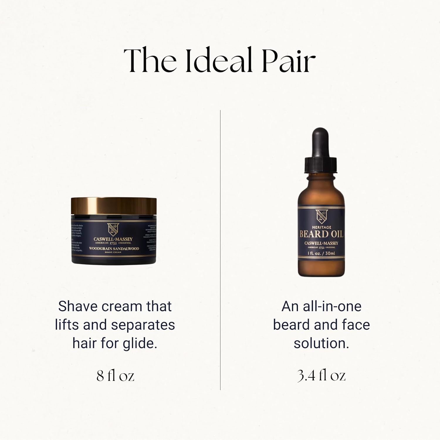 Caswell-Massey Heritage Woodgrain Sandalwood Shave Cream, Natural Men’s Shaving Cream for Smooth Beard Shaving, Soothing for Sensitive Skin, USA Made, 8 Fl Oz
