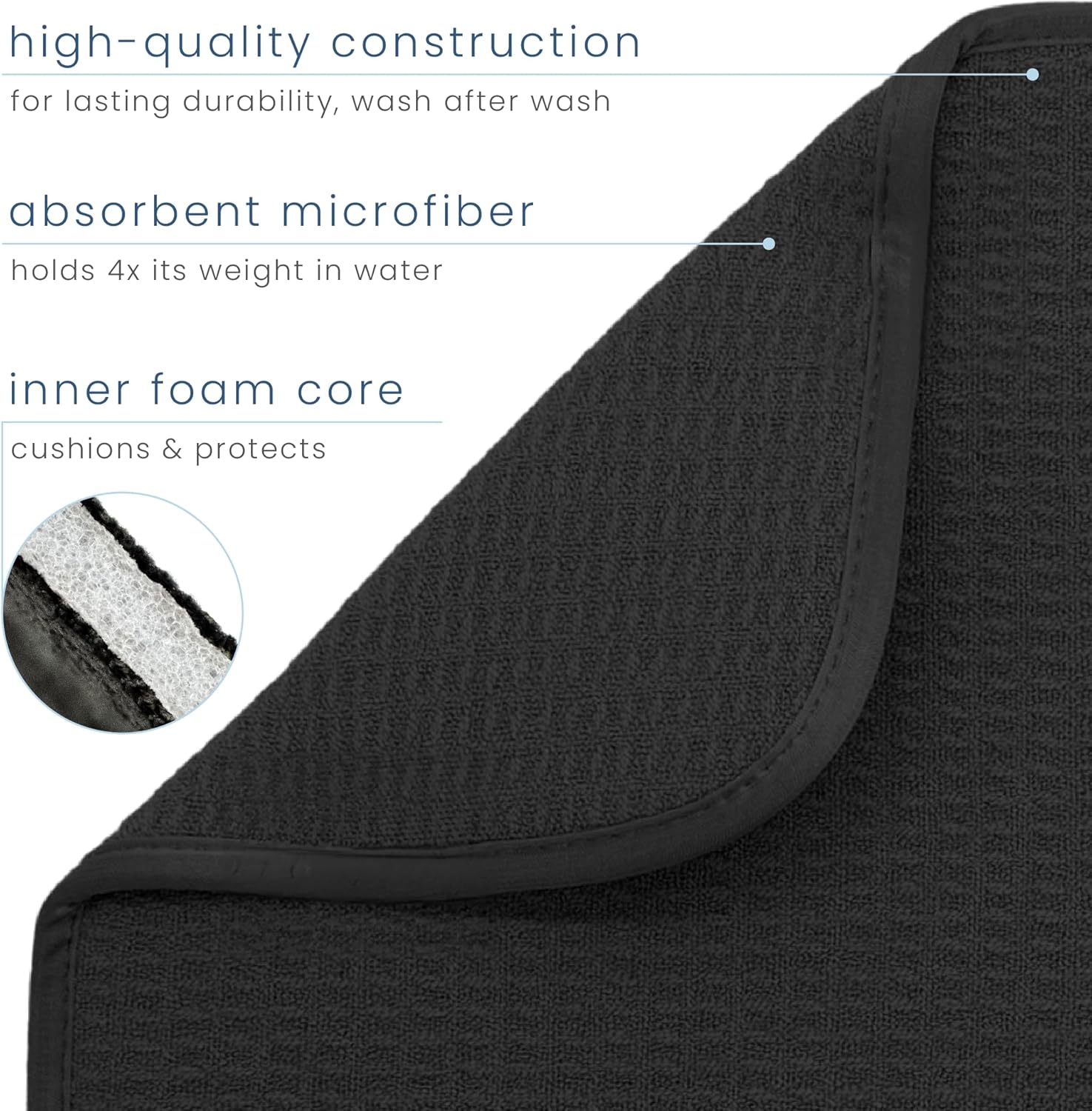 S&T INC. Dish Drying Mat, 16” x 18”, Absorbent Microfiber Kitchen Counter Mat, Dish Drying Pad for Dishes, Utensils, Pots and Pans, Large, Black