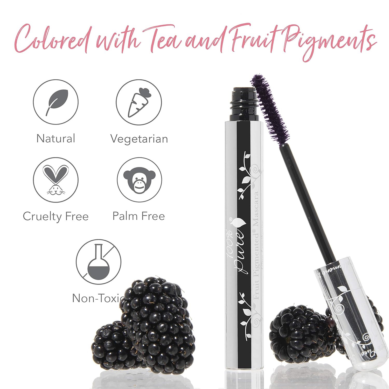 100% PURE Ultra Lengthening Mascara Dramatic Intense Volume & Length Natural Fruit Pigmented Voluminous Eyelash Makeup No Clumping, Smudging or Flaking - Vegan, Blackberry Color - 0.35 oz