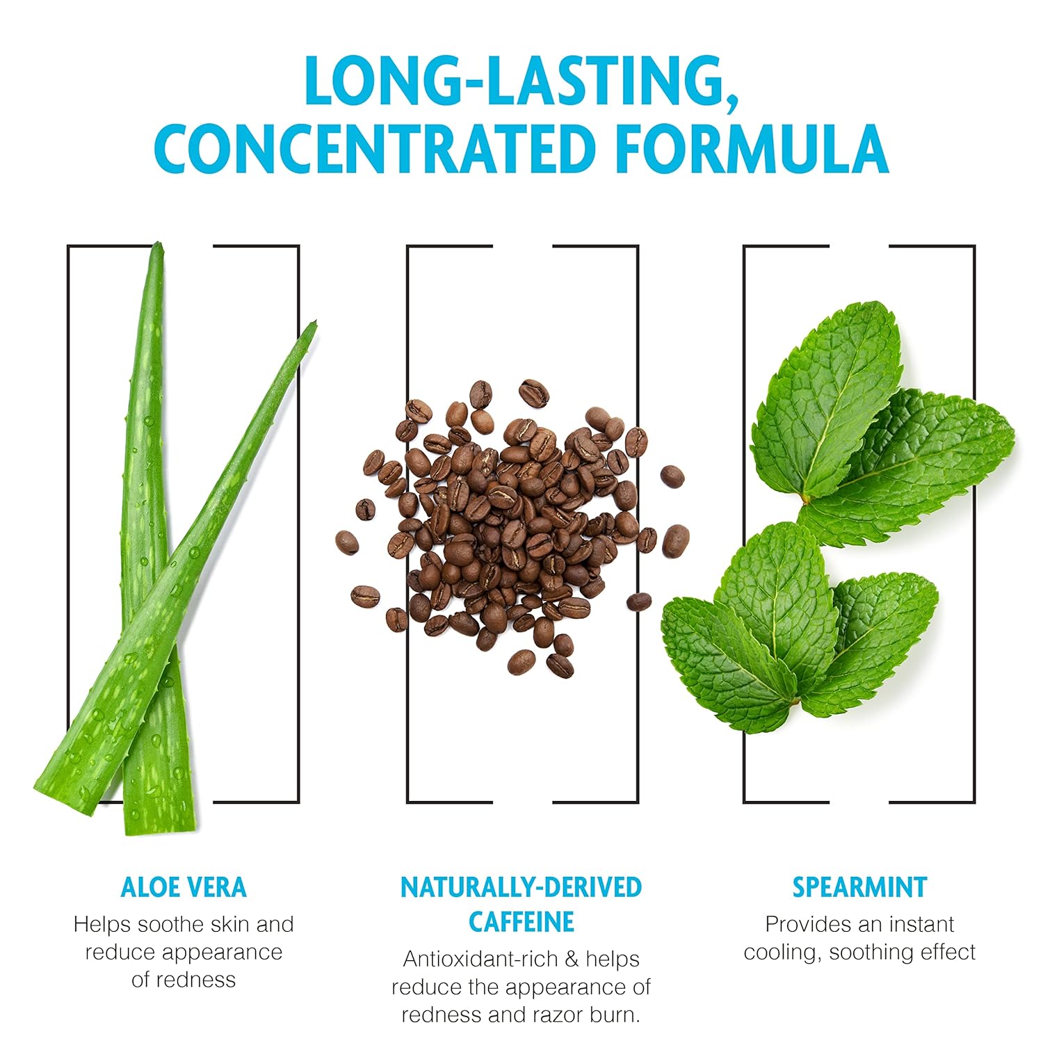 - Soothing Ingredients - Our caffeinated aftershave balm for men is a rich men's aftershave lotion fortified with antioxidant-rich, naturally-derived caffeine, aloe, and spearmint for a cooling, soothing experience that you don't often get with a lot of men skincare products. This aftershave for men is the perfect end to your morning shave routine.