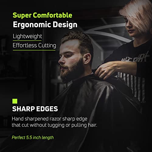 - 🏆 JAPANESE J2 420 STAINLESS STEEL: Made for professional hair stylists & barbers from high-quality 420 steel (58-60 HRC) for exceptional sharpness, durability, and resistance to rust & tarnishing. This steel perfectly balances hardness for sharp cuts & toughness to prevent chipping or breaking. You'll experience consistent & clean cuts for years, less frequent sharpening, & high-quality results every time.