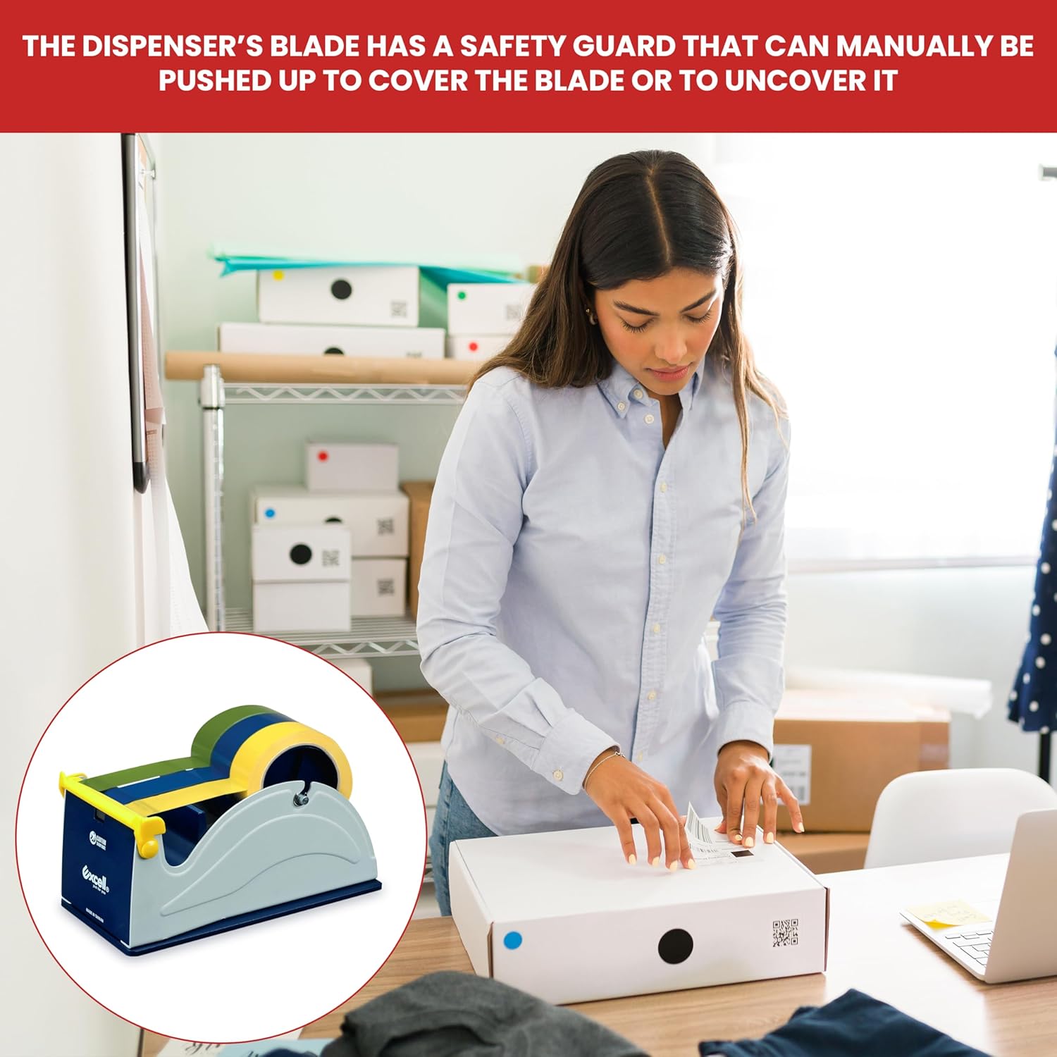 GGR Supplies ET-13370 Blue/Grey Premium Multi-Roll Steel Desk Top Tape Dispenser: 3 in. Wide (3 in. core). Manufactured by Excell