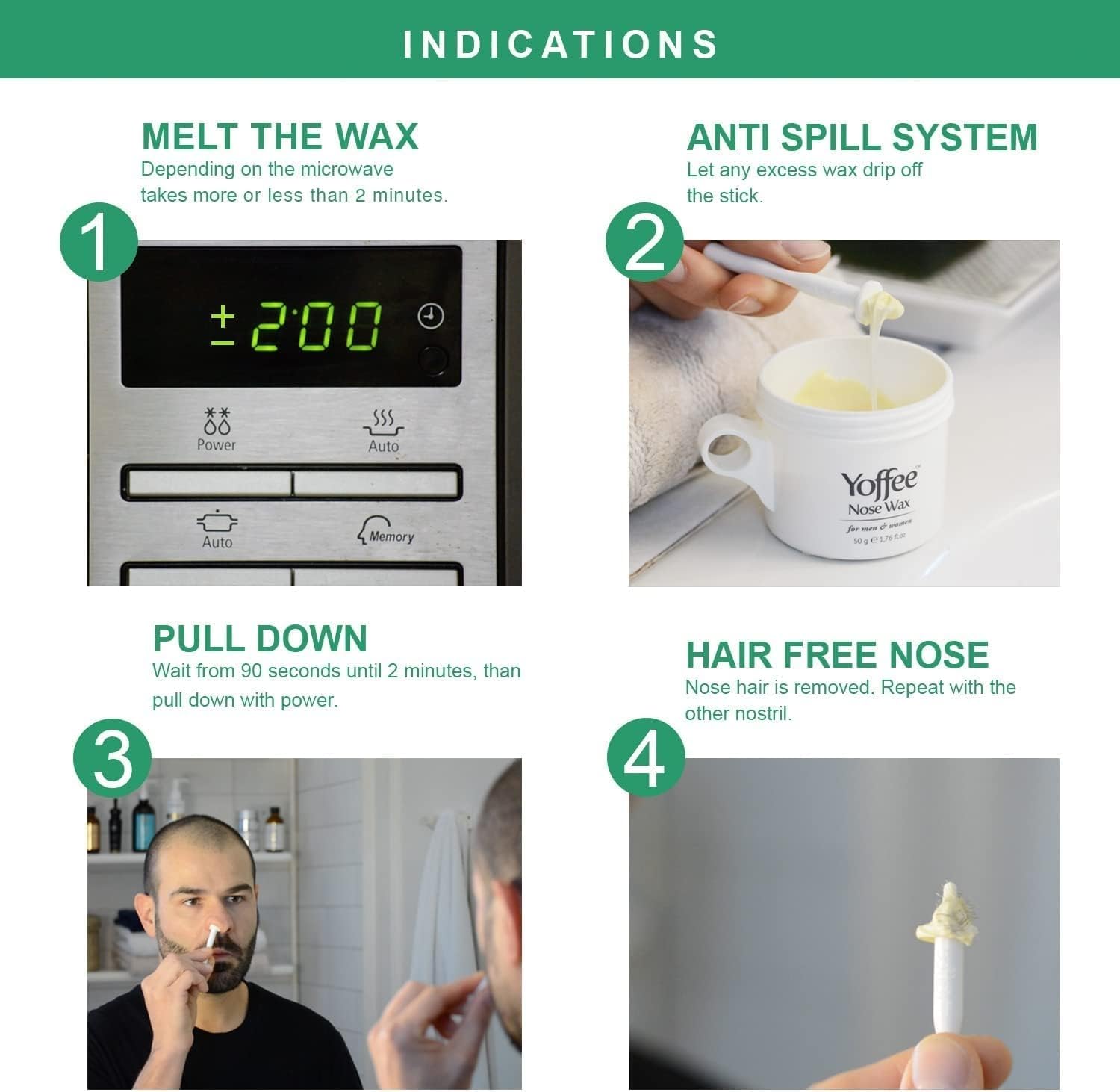 - COMPLETE WAX KIT – Includes everything you need for hair removal: wax, applicators, and easy-to-follow instructions. 10 hair removal sticks, designed by Yoffee to protect friendly nasal hairs and target only the terrifying danglers that loiter around the nasal entrance.