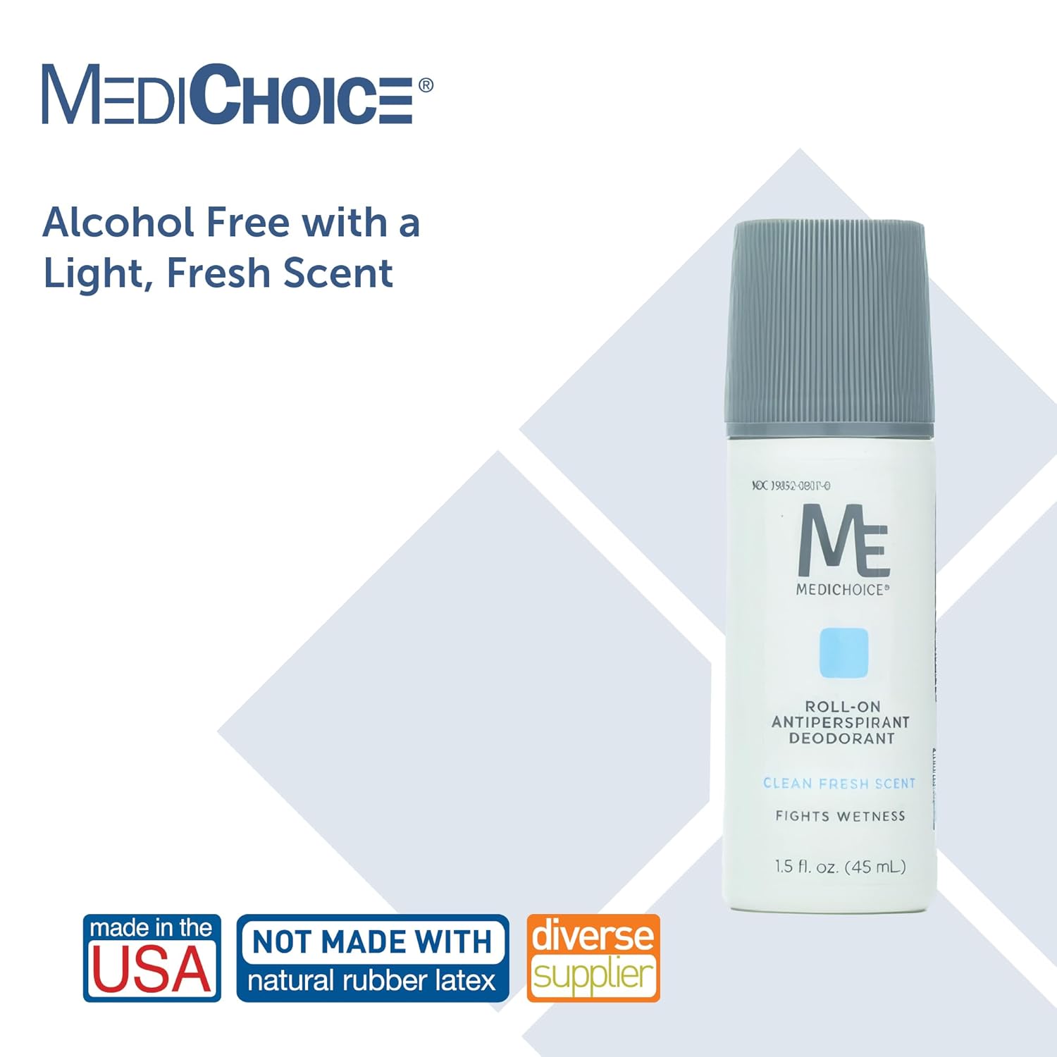 MediChoice Roll On Deodorant Antiperspirant Lightly Scented Unisex Neutralizes Odor Sensitive Skin Travel Size Alcohol Free Bulk 1.5 Oz PC5015 (96 Pack)