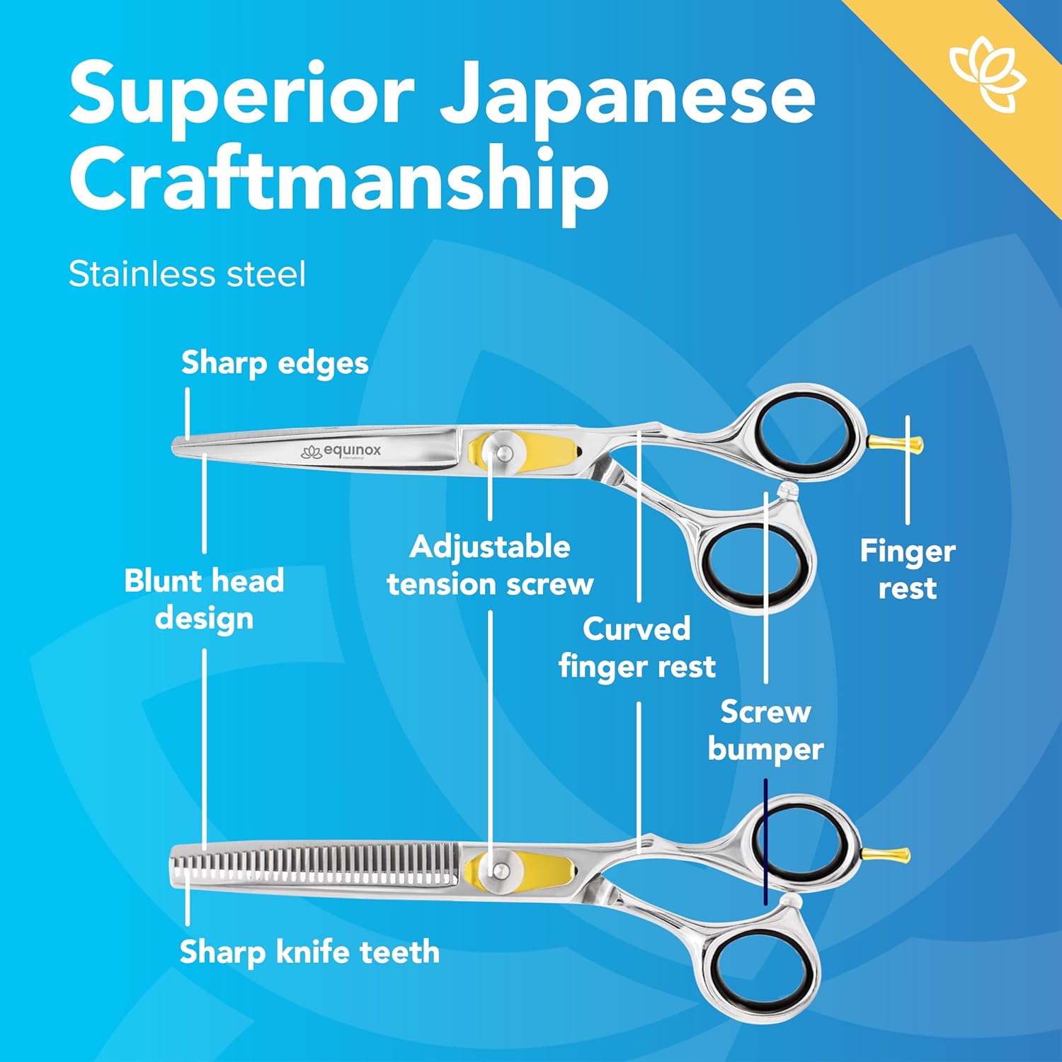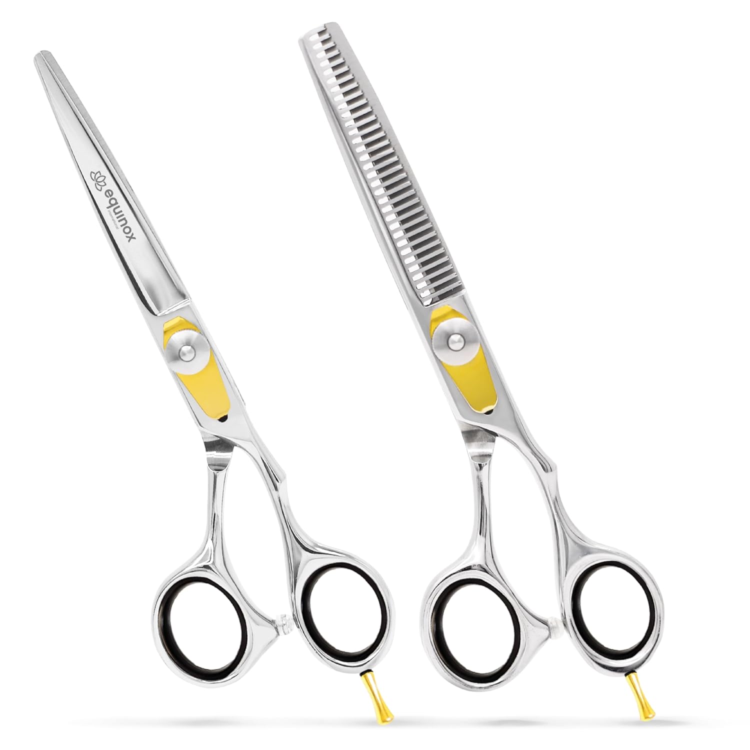 - Ergonomic - Our Equinox Professional Razor Edge Hair Cutting/Thinning Scissor Set is great for salon workers, barbers, and personal usage as well! Its distinctive easy grip handle design on each scissor allows the scissors to cradle fingers, delivering a confident haircut every time!