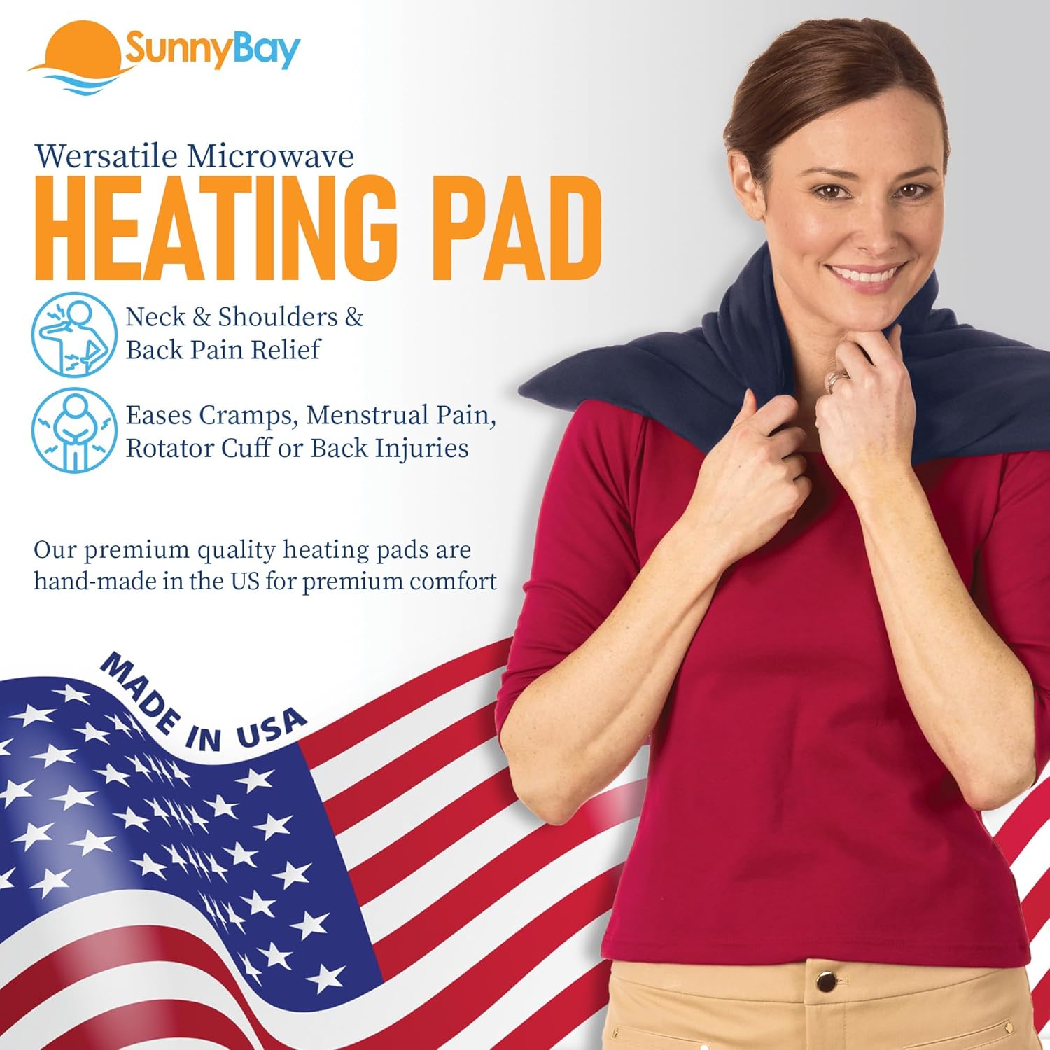 SunnyBay Extra Large Microwave Heating Pad, Microwavable Heavy Weighted Full Body Moist Hot or Cold Pack and Washable Fleece Cover, 10x24 Inches, FSA HSA Eligible, 2.8 lbs, Made in USA, Navy Blue