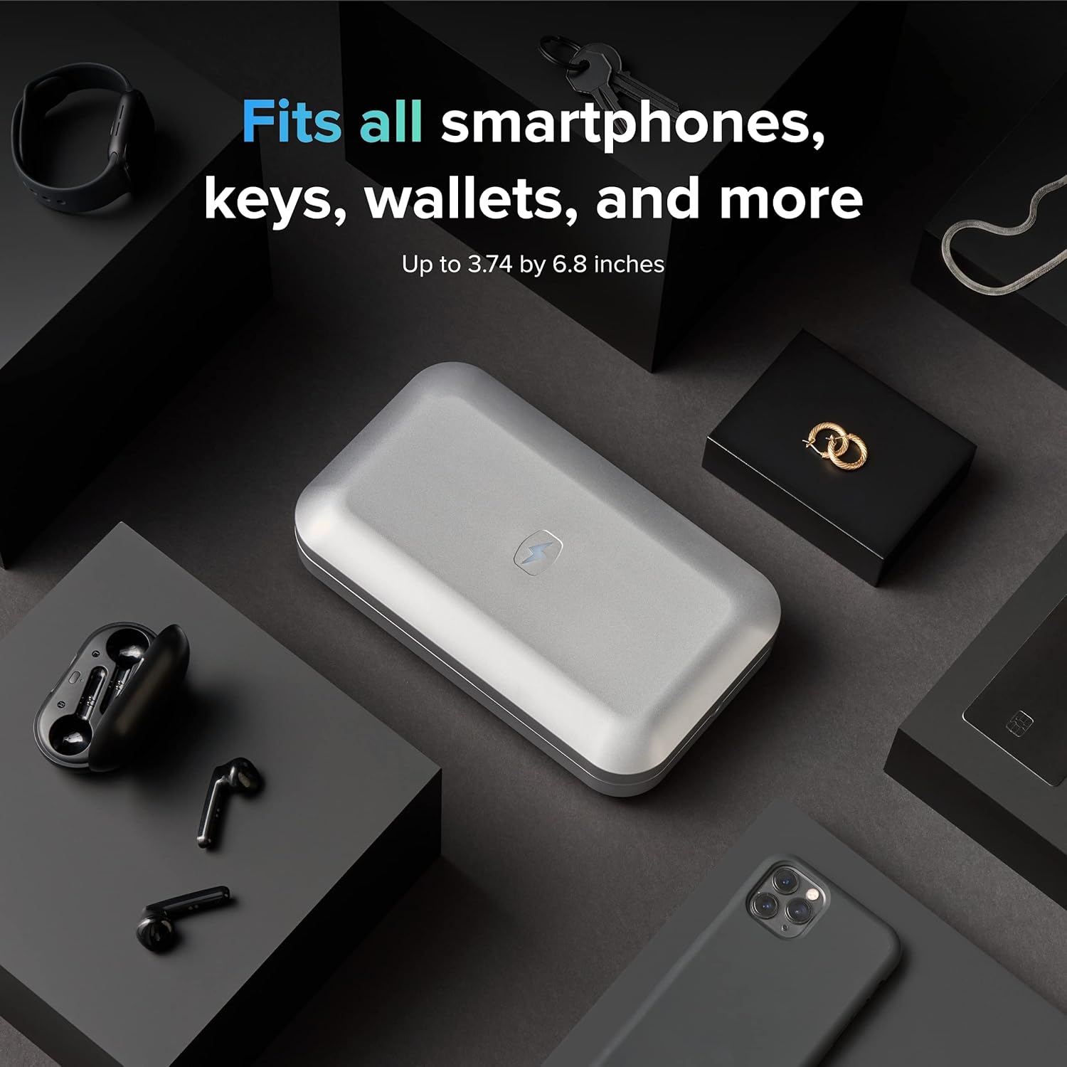 PhoneSoap 3 UV Cell Phone Sanitizer & Dual Universal Cell Phone Charger Box | Patented & Clinically Proven 360-Degree UV-C Light Sanitizer | Disinfects and Charges All Phones (Silver)