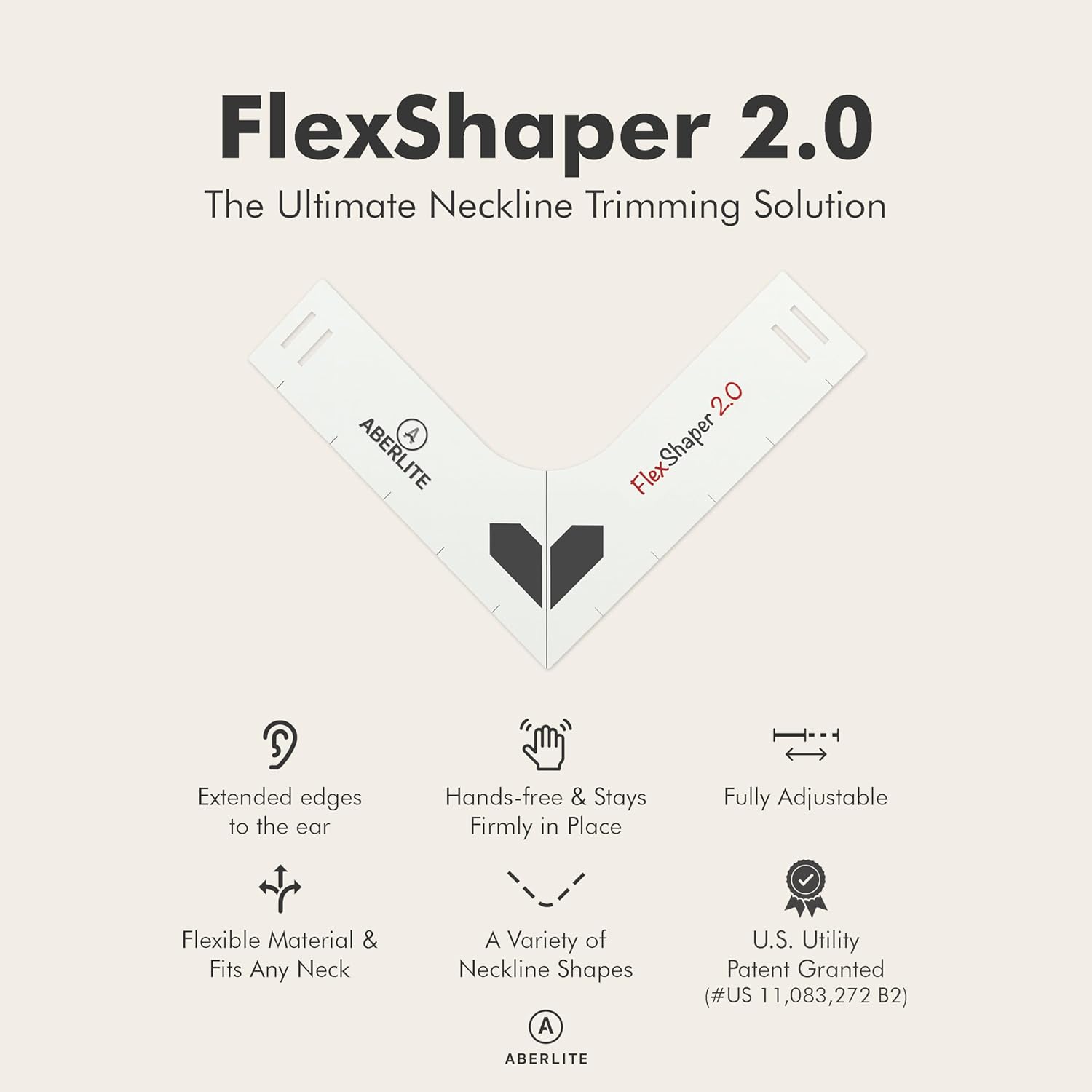 Aberlite FlexShaper 2.0 - Beard Shaper for Men - Hands-Free & Flexible Neckline Guide - Beard Trimmer Tool - Lineup Stencil Kit - White