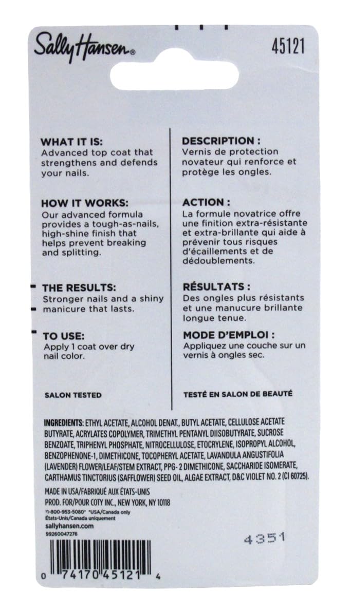 Sally Hansen Hard As Nails®, Top Coat, Nail Strengthener, Nail Protectant