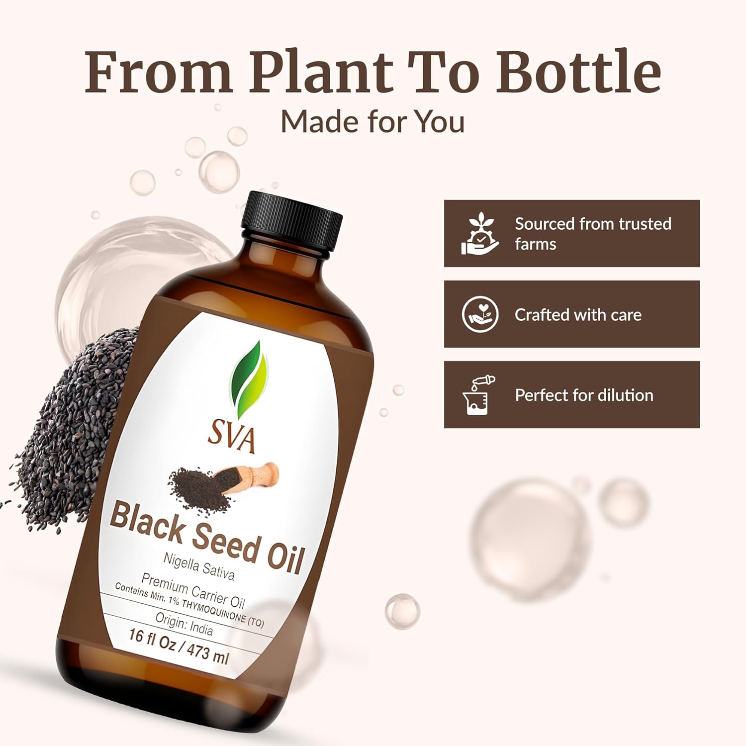 SVA Black Seed Oil - 16 Fl Oz – 100% Natural Cold Pressed Black Seed Oil - for Face, Skin Care, Hair Care, Scalp Massage & Body Massage – Carrier Oil