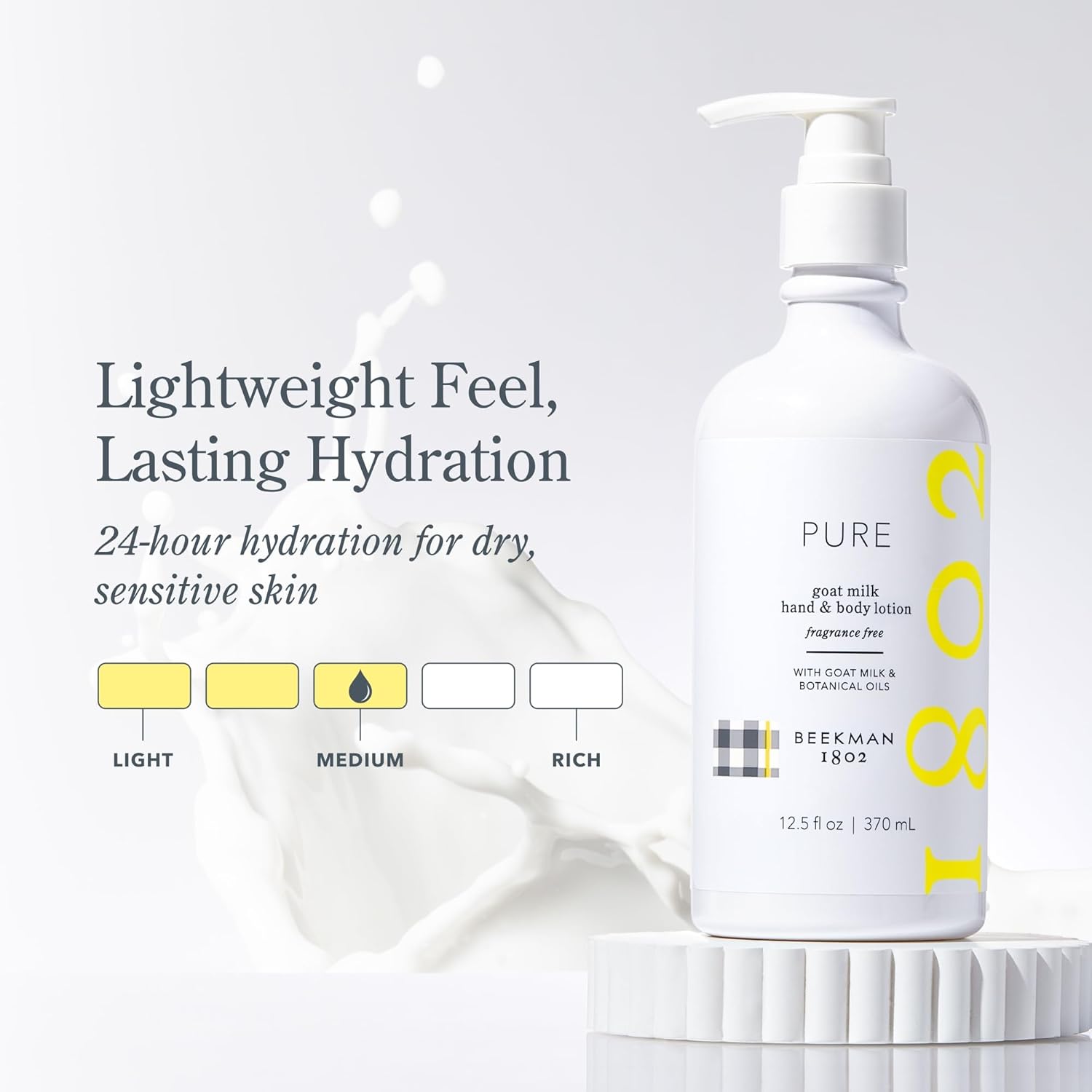 Beekman 1802 Goat Milk Lotion - Hydrates, & Softens Dry Skin, Body and Hand Lotion - With Shea Butter & Jojoba Oil - Lightweight, Non-Greasy, Cruelty-Free