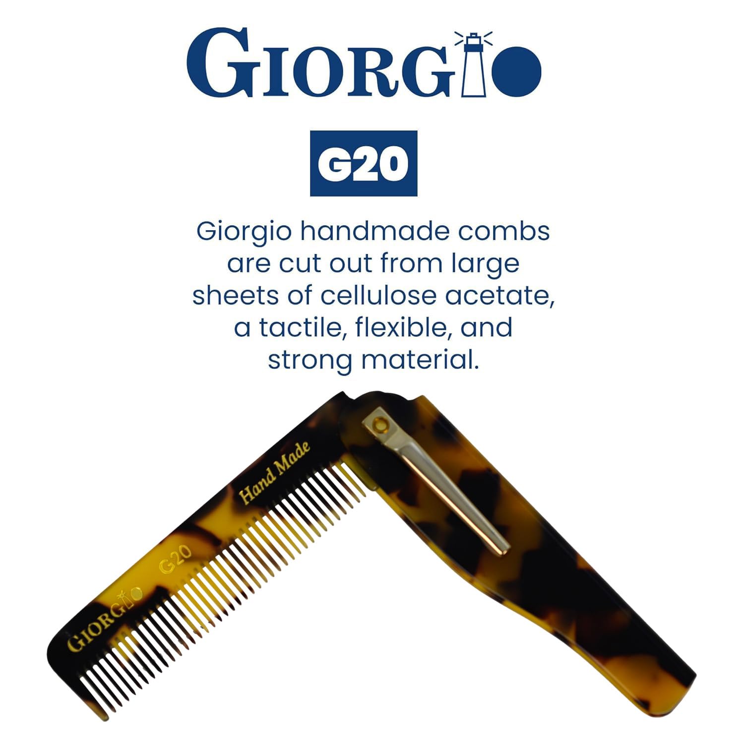 Giorgio G20 Folding Mustache and Beard Comb - 6.5 Inches Small Fine Tooth Styling and Travel Comb, Sawcut and Hand Polished, Handcrafted for Everyday Hair Care