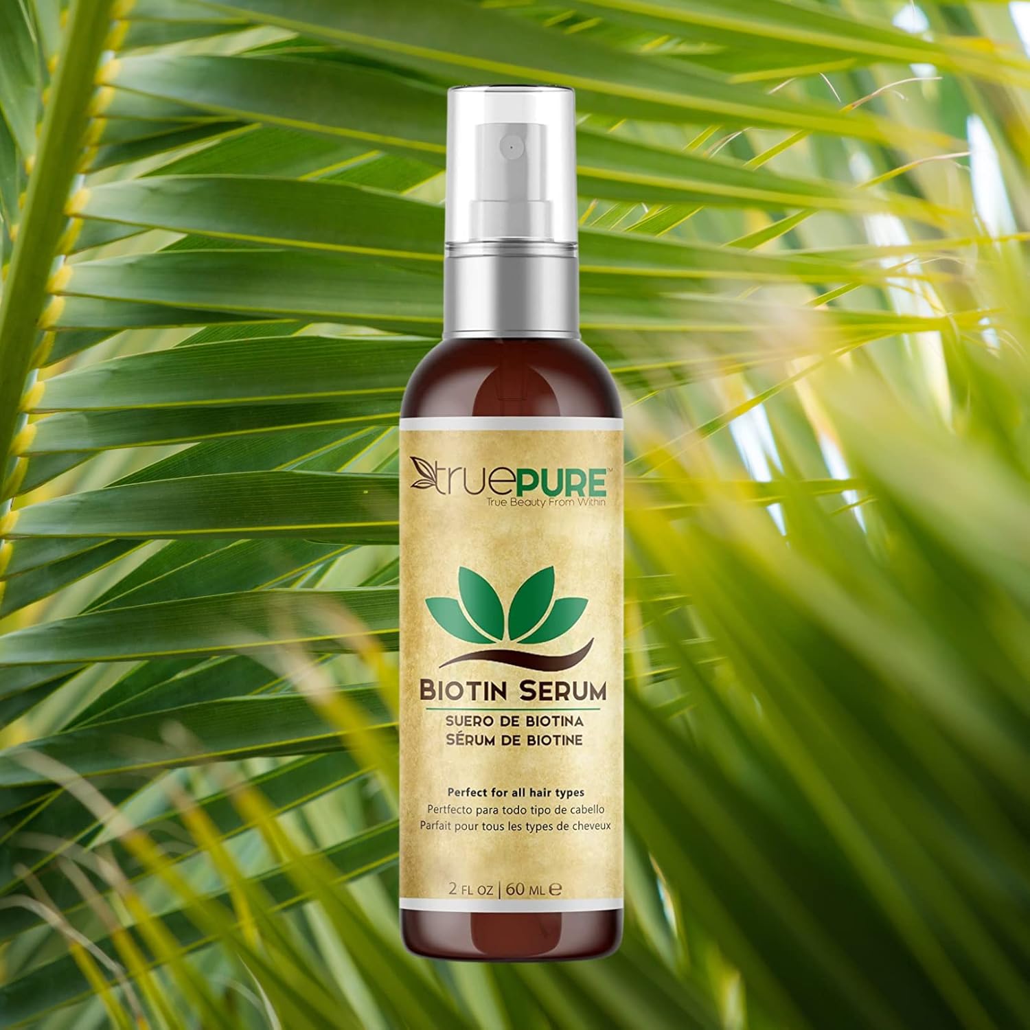 Biotin Hair Growth Serum Spray - For Men & Women With Fine, Thinning Hair - Fragrance Free & Sulfate Free DHT Blocking Hair & Beard Growth Formula, 2oz by TruePure