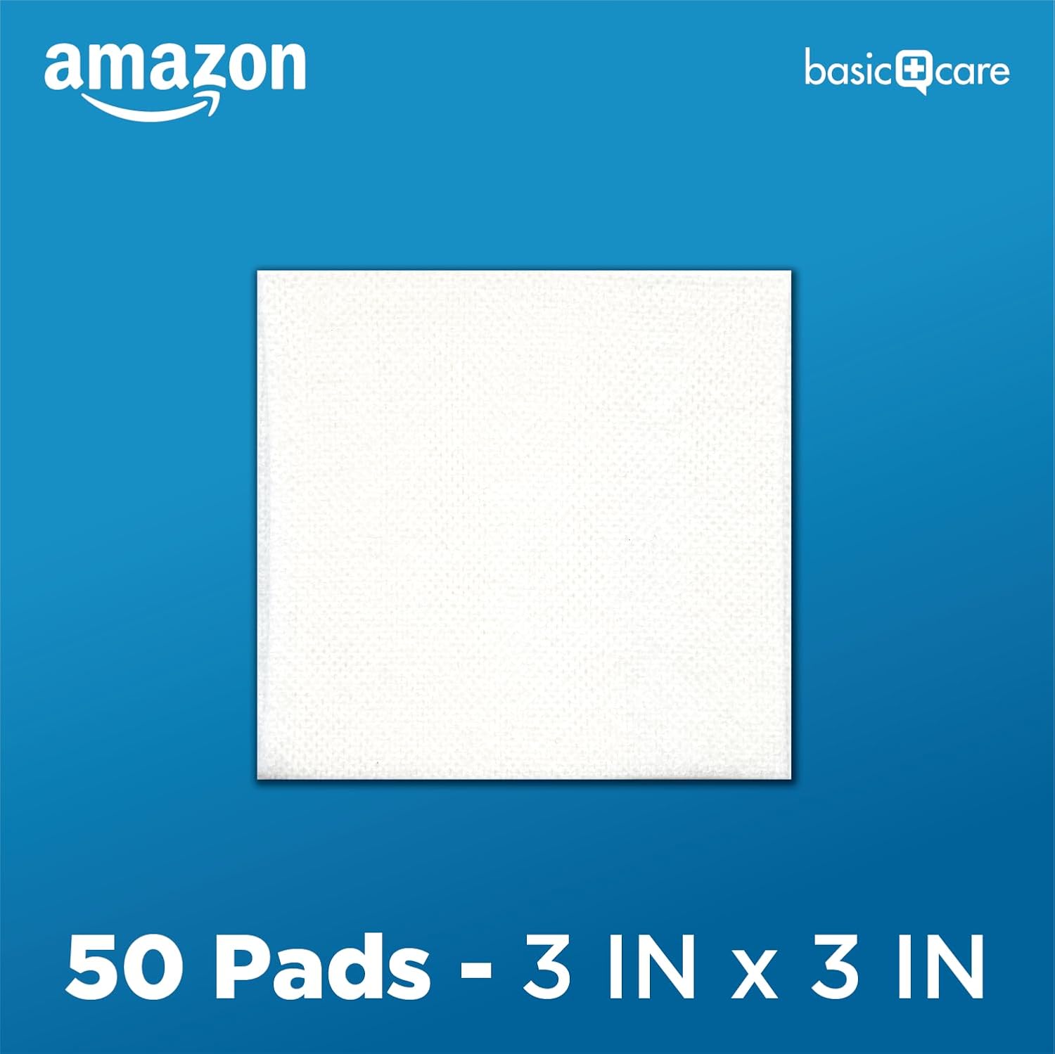 Amazon Basic Care Gauze Pads, 3x3 inches Sterile Medical Wound Dressing Sponges for Cleaning, Covering, & Cushioning Cuts & Minor Injuries, 50 Count (Pack of 1), (Previously All Health)