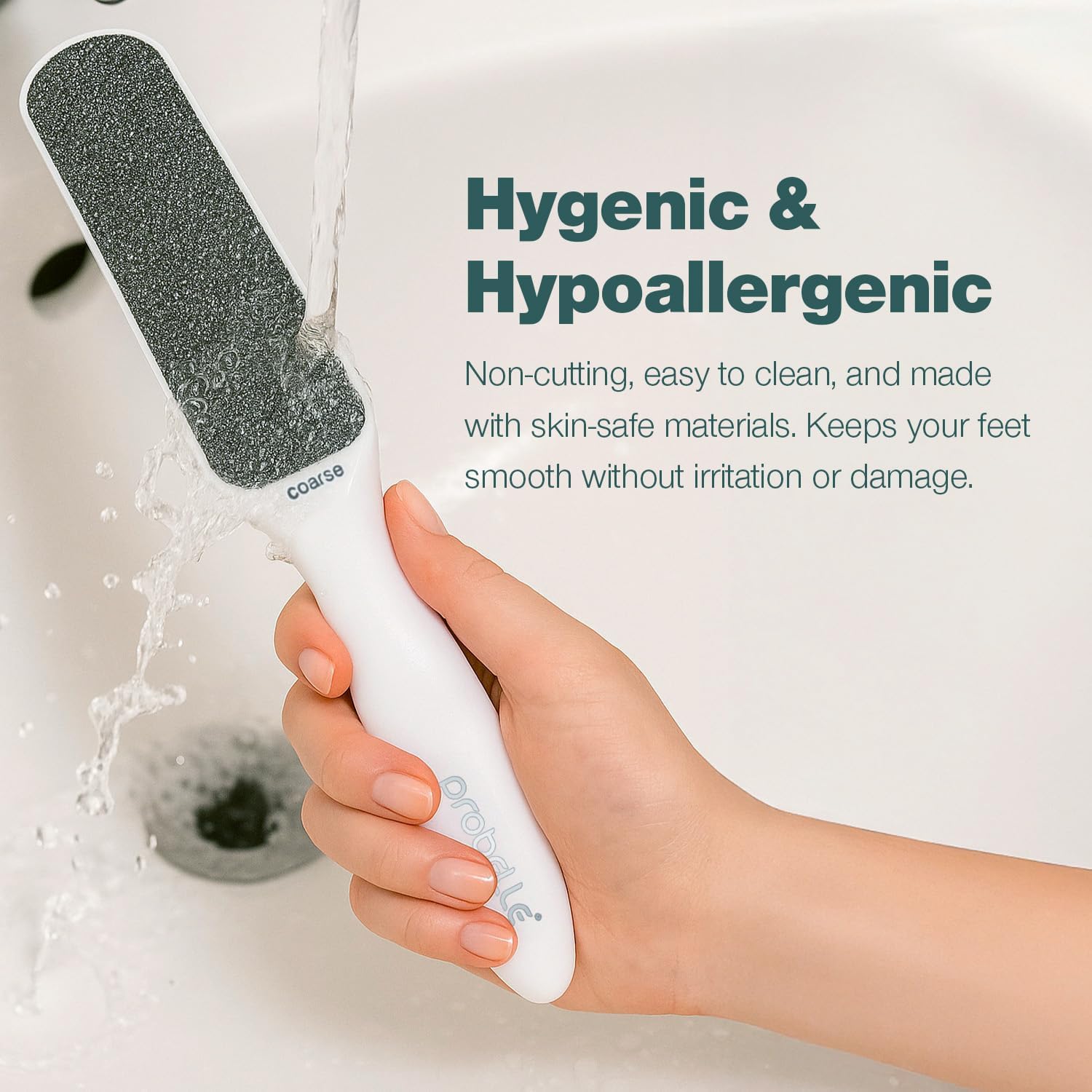 - EASY TO CLEAN AND HYPOALLERGENIC – Our premium foot scraper for dead skin is made of hypoallergenic and quality components, has a non-cutting finishing, cleans easily and is also very sanitary