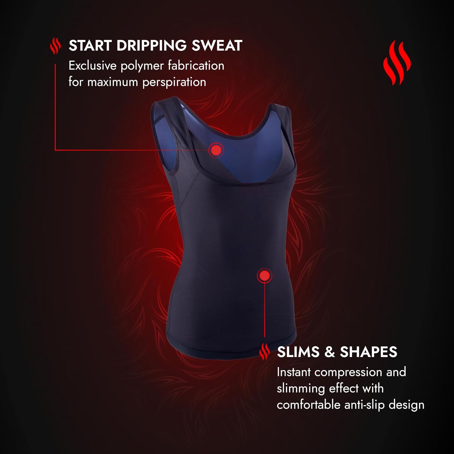 - ULTRA-PREMIUM FABRICATION: Sweat Shaper's exclusive blend of fabrics have been specially selected to create the ultimate women's tank top in Advanced Sweatwear. Consisting of two layers: the inner thermogenic polymer fabric increases your core temperature to promote sweating. The outer performance compression fabric instantly slims and shapes your figure. Finished with an anti-slip waistband to ensure it stays in place and doesn't shift on your body, especially during intense workouts.