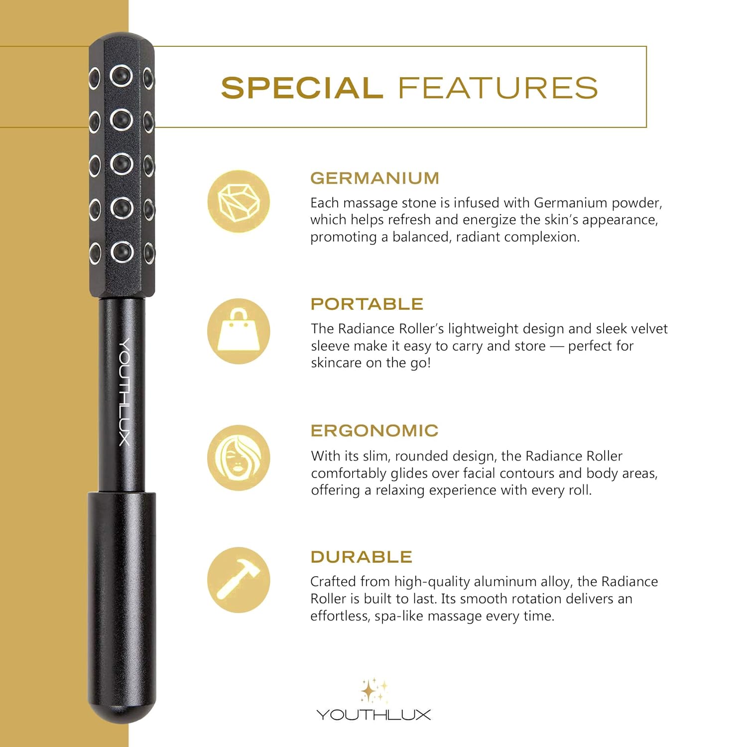 - RADIANT SKIN: 30 germanium infused stones deliver an energizing boost that perks up tired skin and brings out a natural-looking glow.