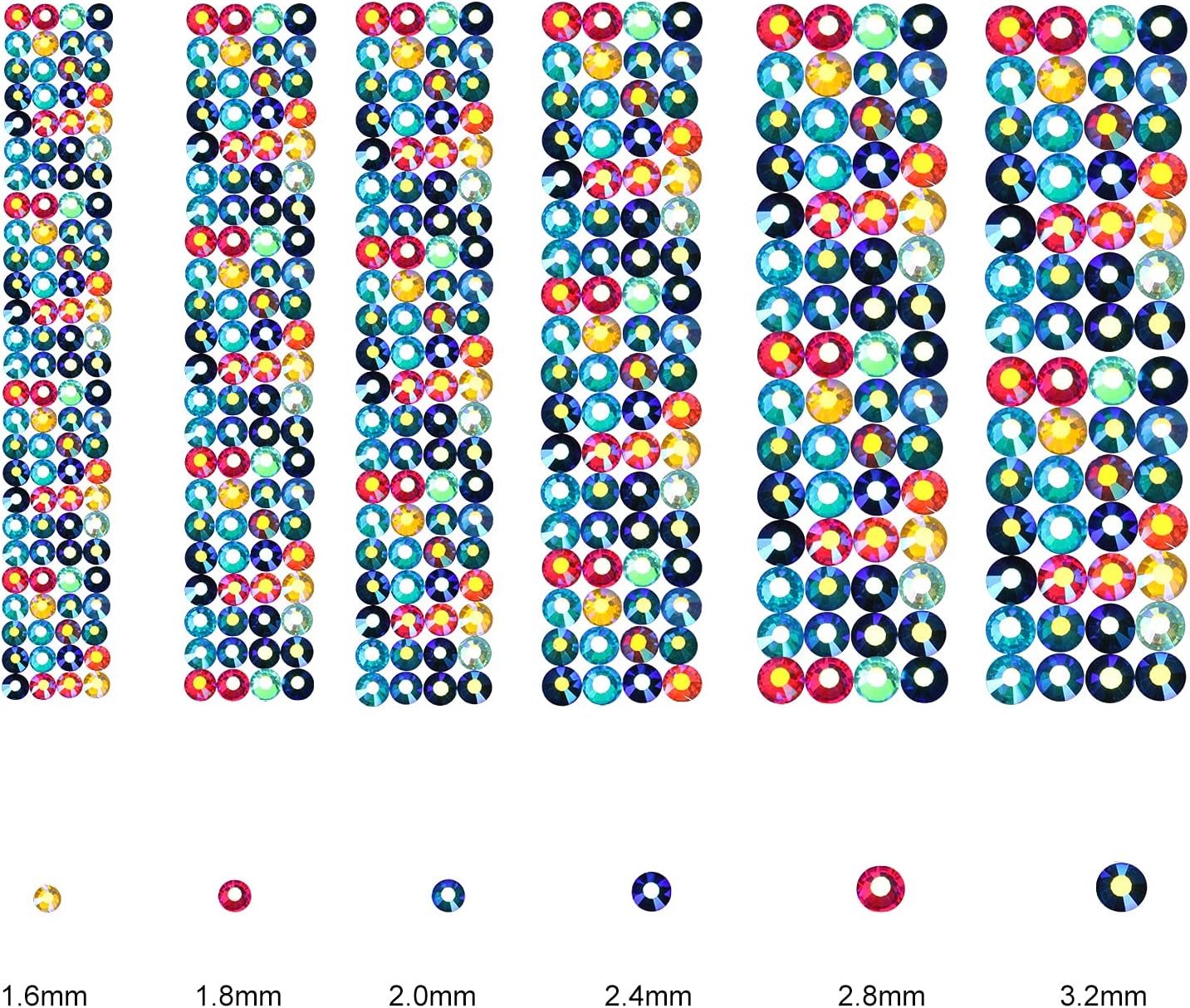 3456pcs Flatback Rhinestones Glass Charms Diamantes Gems Stones for Nail Art 6 Size ss4~ss12 Color AB Mixed
