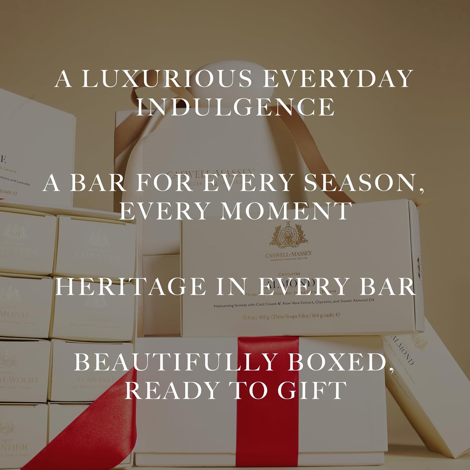 - Twelve Signature Fragrances: Explore the full range of Caswell-Massey’s artistry with Almond, Sandalwood, Lavender, Verbena, Oatmeal, OAIRE, LX48, Greenbriar, Number Six, 2571, Newport, and Jockey Club soaps.