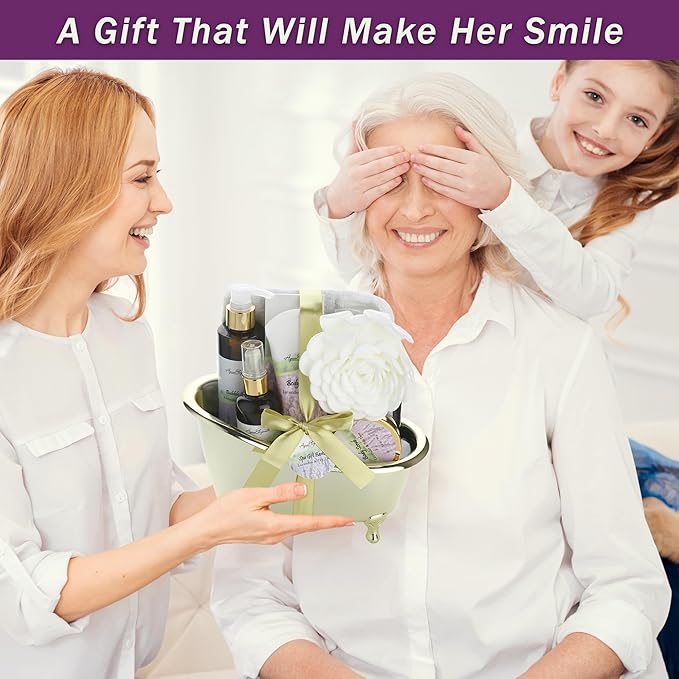 - Excite Her With A Special Gift Set - Women love receiving spa gift baskets as presents. That is why we designed our spa baskets with premium packaging to make a great first impression. Out bath set makes a wonderful gift for mom, daughter, wife, girlfriend, sister, or any woman. They're the perfect choice for Christmas, Birthdays, Anniversaries, Valentine's Day, Mother's Day - or just to show someone you care.