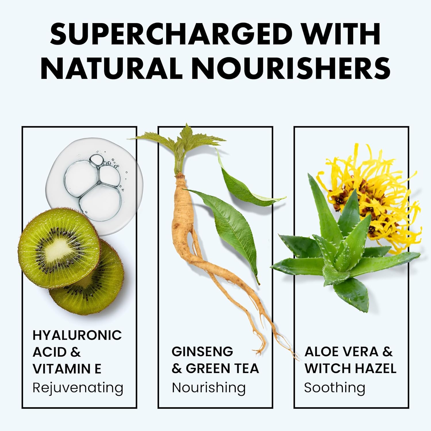 - POWERFUL ANTIOXIDANT BLEND: Infused with green tea, aloe vera, and ginseng, this antioxidant-rich formula supports skin’s natural radiance while delivering lasting hydration. With 2.5% hyaluronic acid, it helps maintain a plump, refreshed complexion.