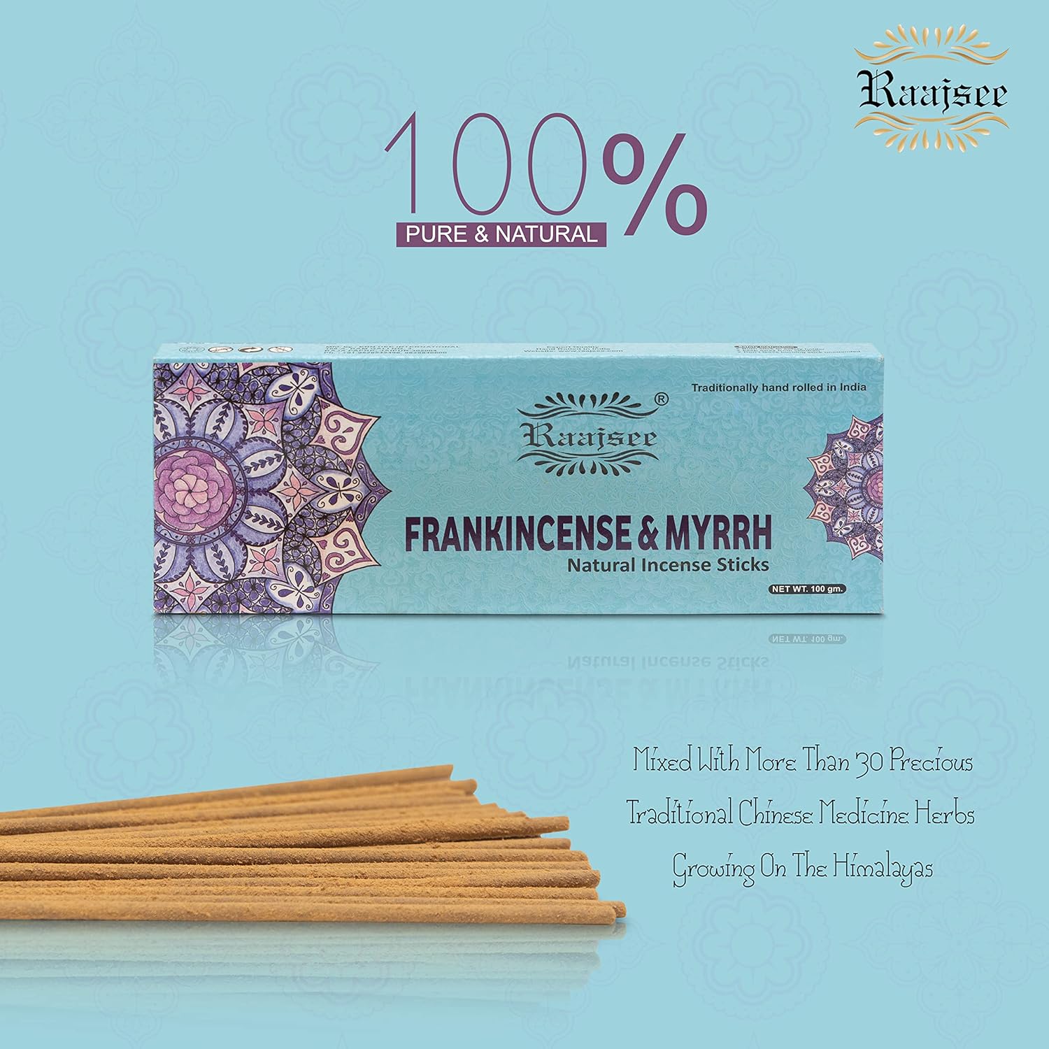 Raajsee Frankincense & Myrrh Incense Sticks, 100%-Natural Charcoal Free Organic Non Toxic Clean Burning Handmade Insence Sticks 100 gm Pack, Meditation Gifts – Spritual Cleansing
