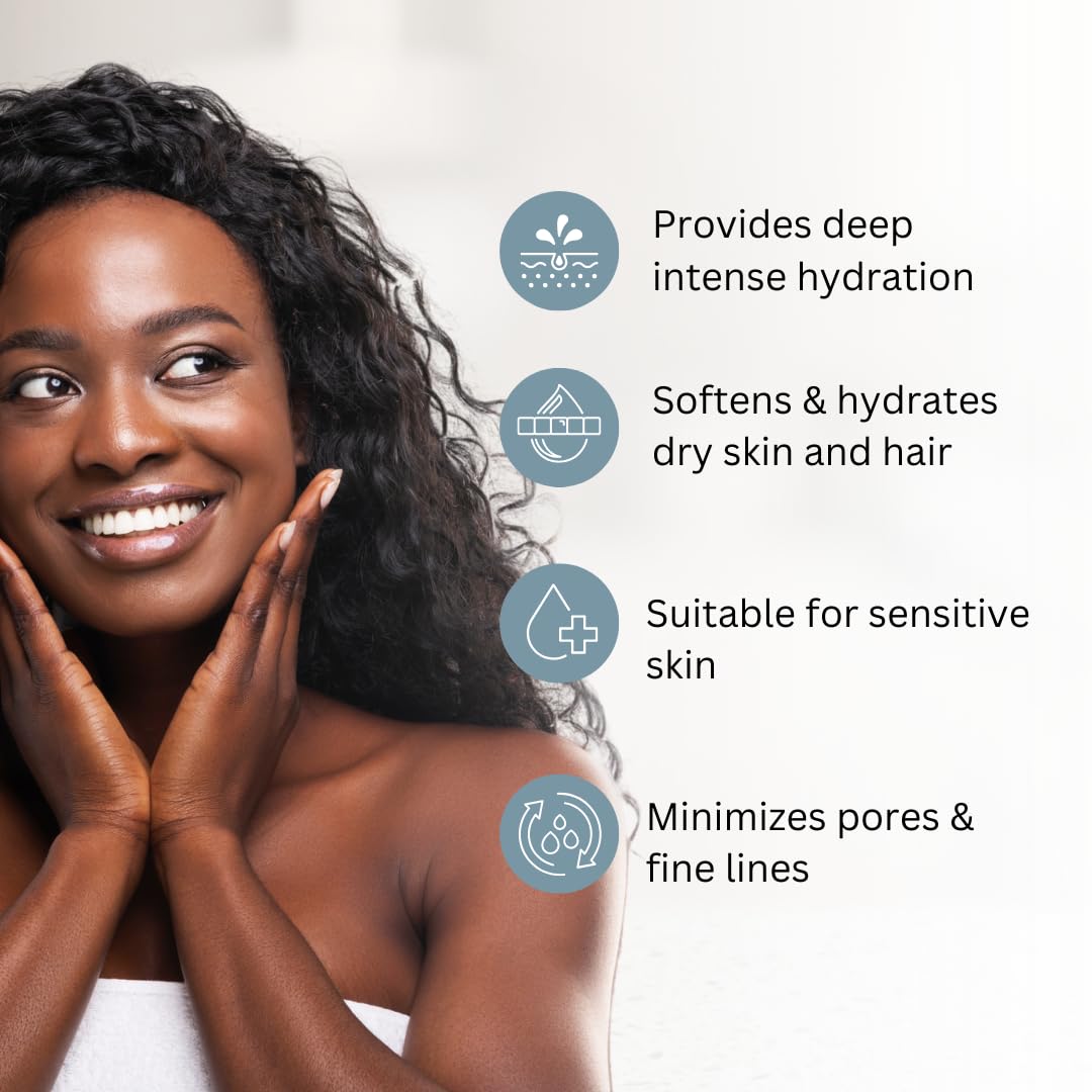- Moisturizing and Soothing Properties: A powerful, yet lightweight moisturizer that is naturally unscented, non-comedogenic, and suitable for sensitive skin. Perfect for dry and damaged hair and skin caused by psoriasis or eczema.