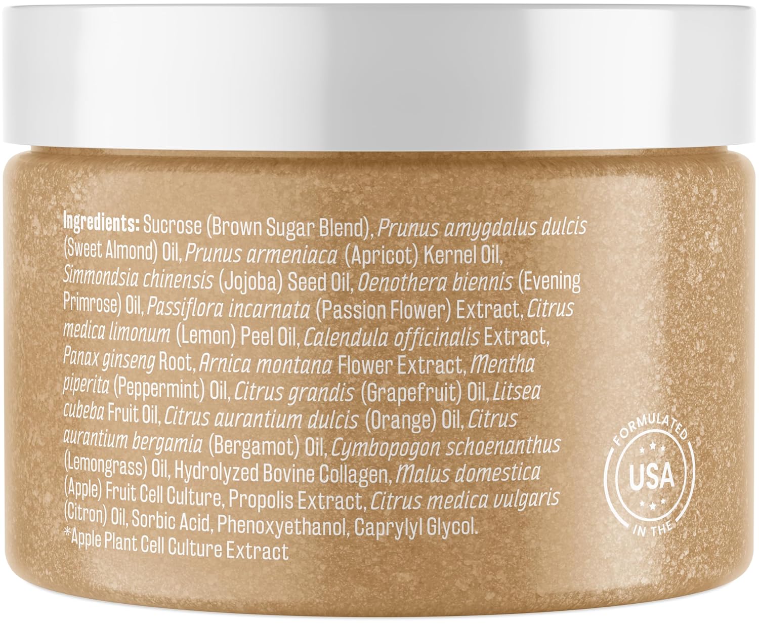 Brown Sugar Scrub Face Foot & Body Exfoliator Infused with Collagen and Stem Cell Exfoliating Salt Body Scrub for Toning Skin Cellulite Skin Care, 12oz by M3 Naturals