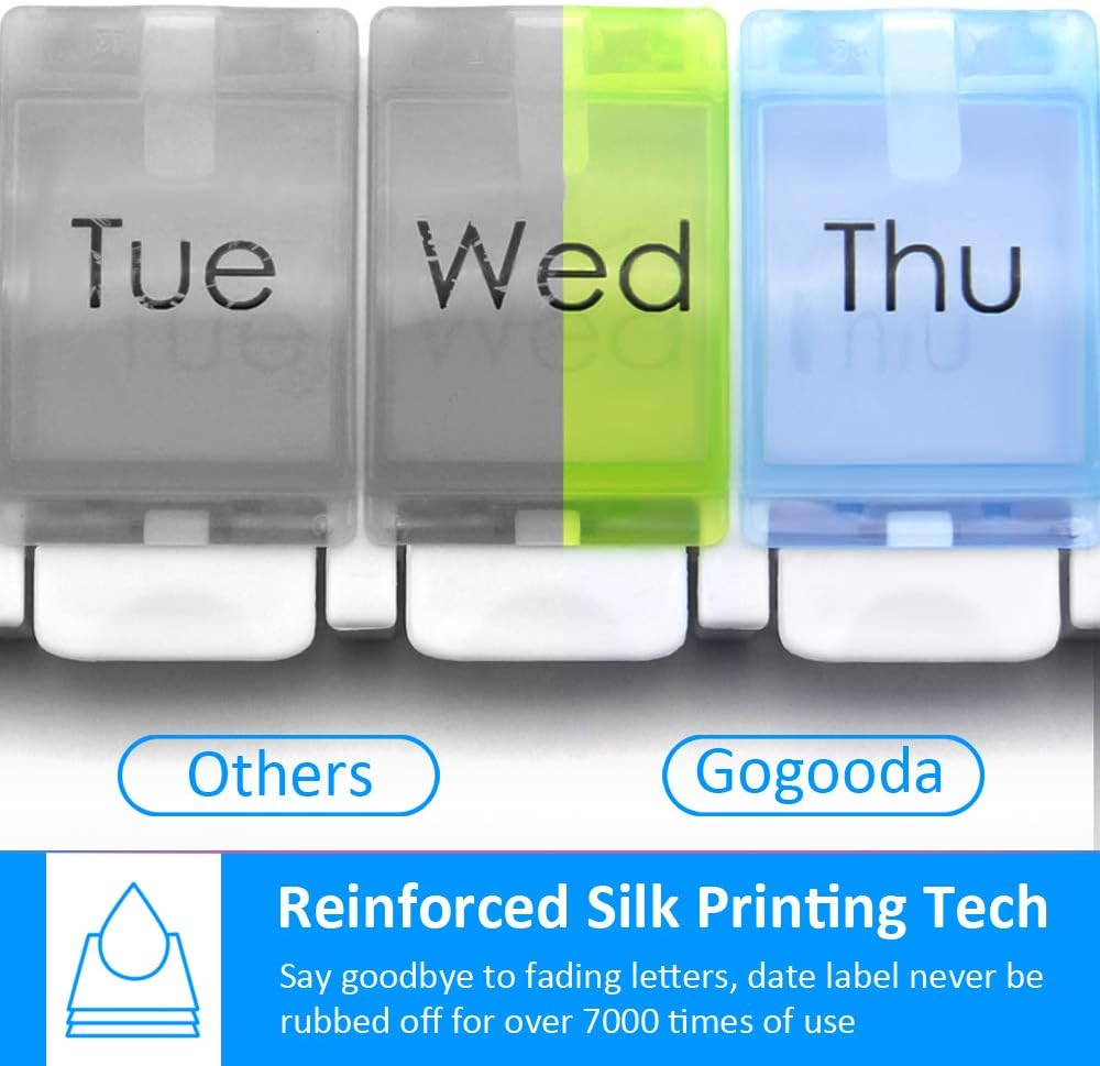 - Practical and sturdy: Translucent pill box lids help you easily tell out what's inside without open it. The lids are removable for you to line up the week's date. 3D printing tech ensure the icons won't fade for repeated use up to thousand times