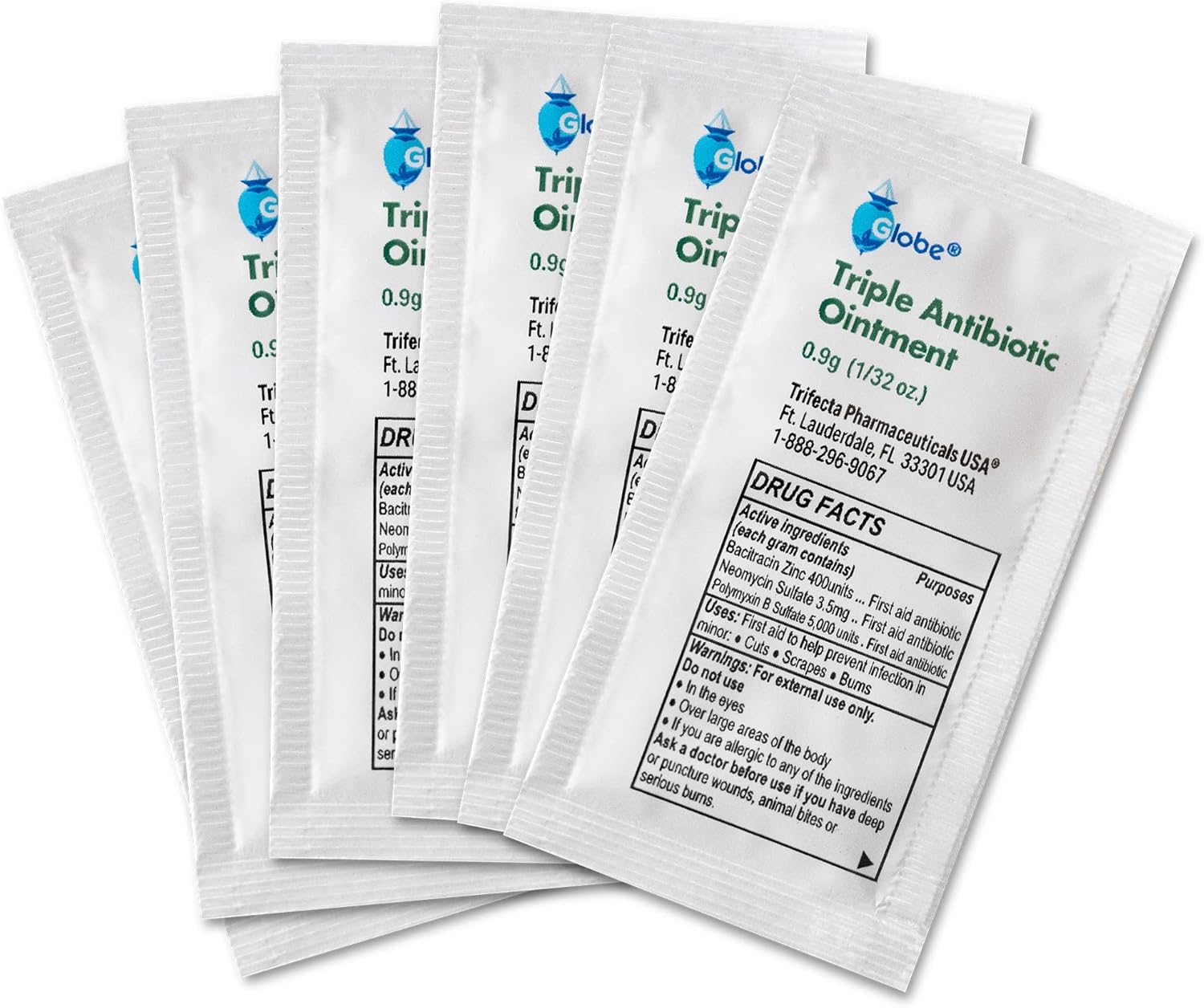 - TRAVEL-FRIENDLY PACKETS: Globe Triple Antibiotic Ointment comes in 25 and 144 convenient, 0.9g single-use packets. Compact and easy to carry, they’re perfect for travel, camping, or keeping in your car, purse, or backpack, ensuring you always have advanced wound protection at hand.