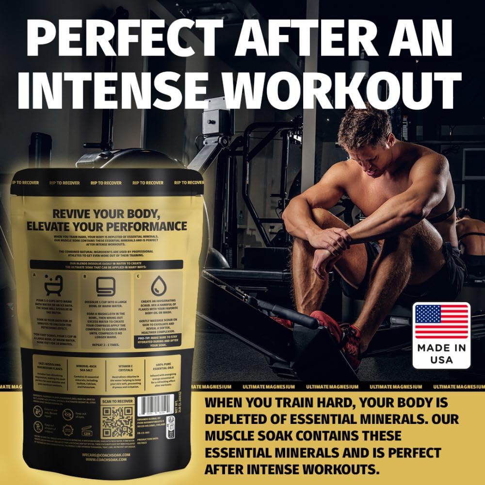 Coach Soak Recovery Bath Soak - Faster Absorption Than Epsom Salt for Pain - Rejuvenating Magnesium Flakes with 21 Minerals, Essential Oils & Bath Salts, 3lbs (Energizing Citrus)