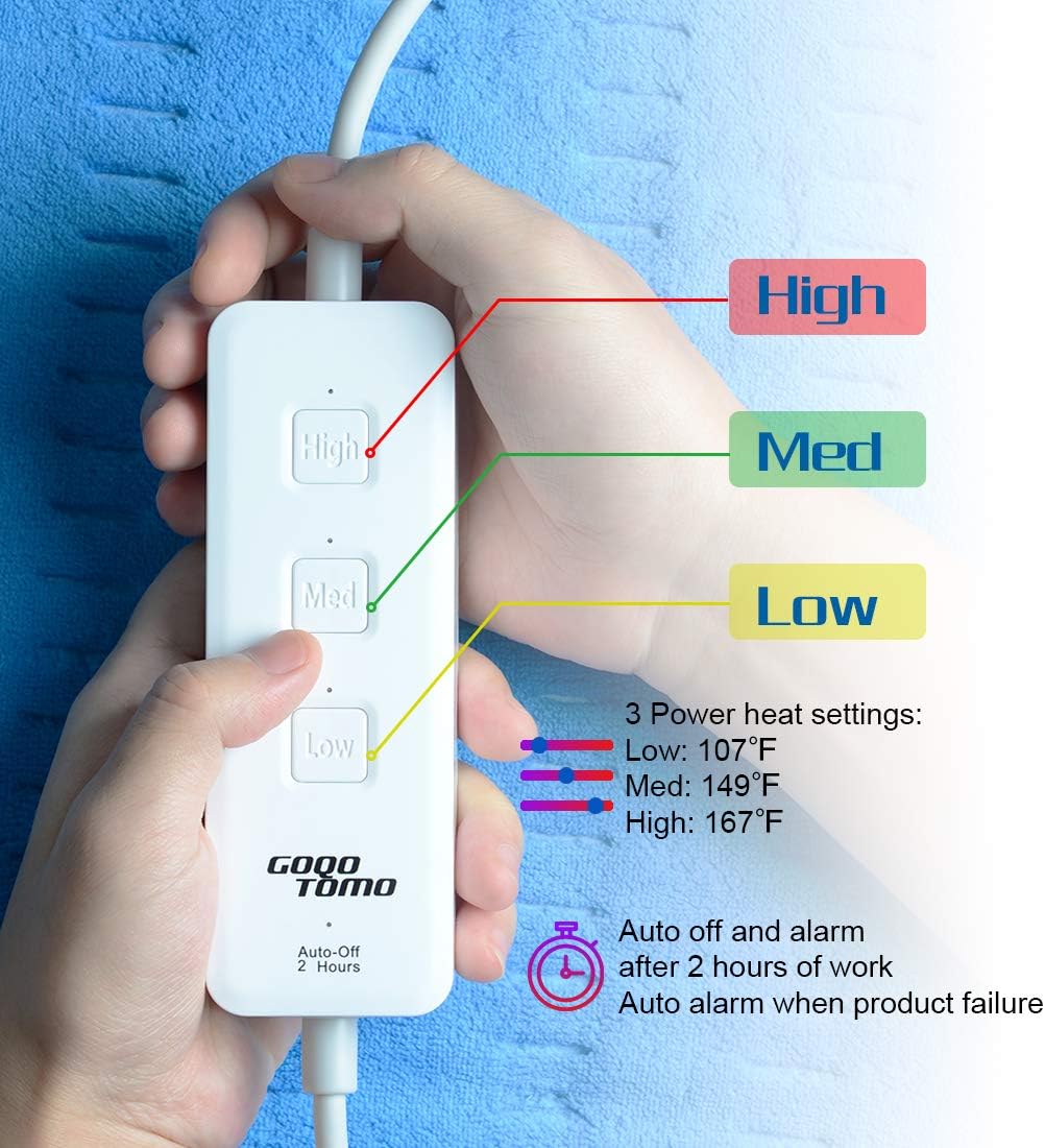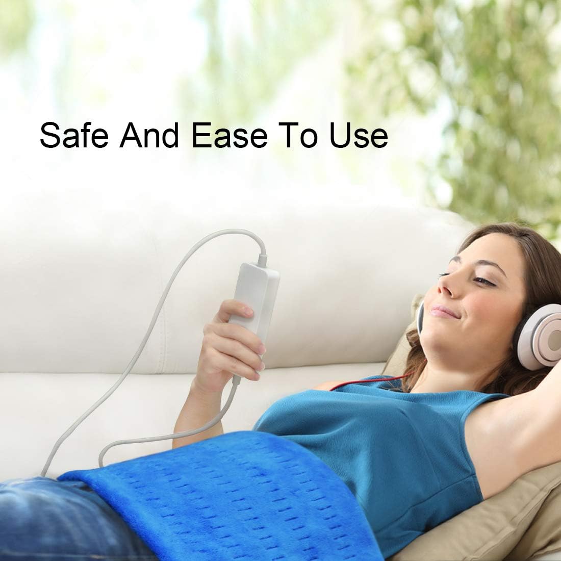 Heating Pad Electric Fast-Heating for Back/Waist/Abdomen/Shoulder/Neck Pain and Cramps Relief - Moist and Dry Heat Therapy with Auto-Off 12"x24" Hot Heated Pad by GOQOTOMO-HF-B(Blue)