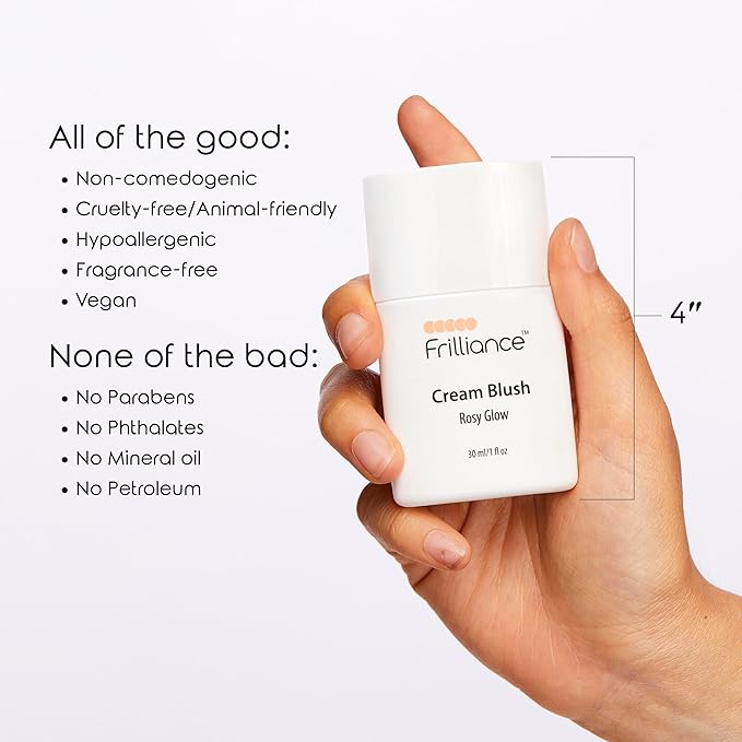 - SHEER HYDRATION: 30 ml / 1 fl oz Bottle of Frilliance Hydrating Cream Blush, Sheer Rosy Tint. Don’t rely on your auntie to pinch your cheeks for a healthy glow! This skin-friendly rosy tint is just the right amount of sheer color that both hydrates and puts roses on your cheeks.