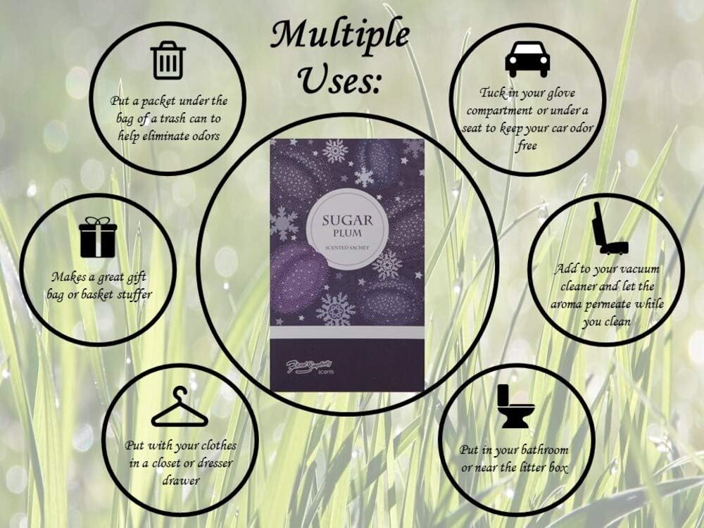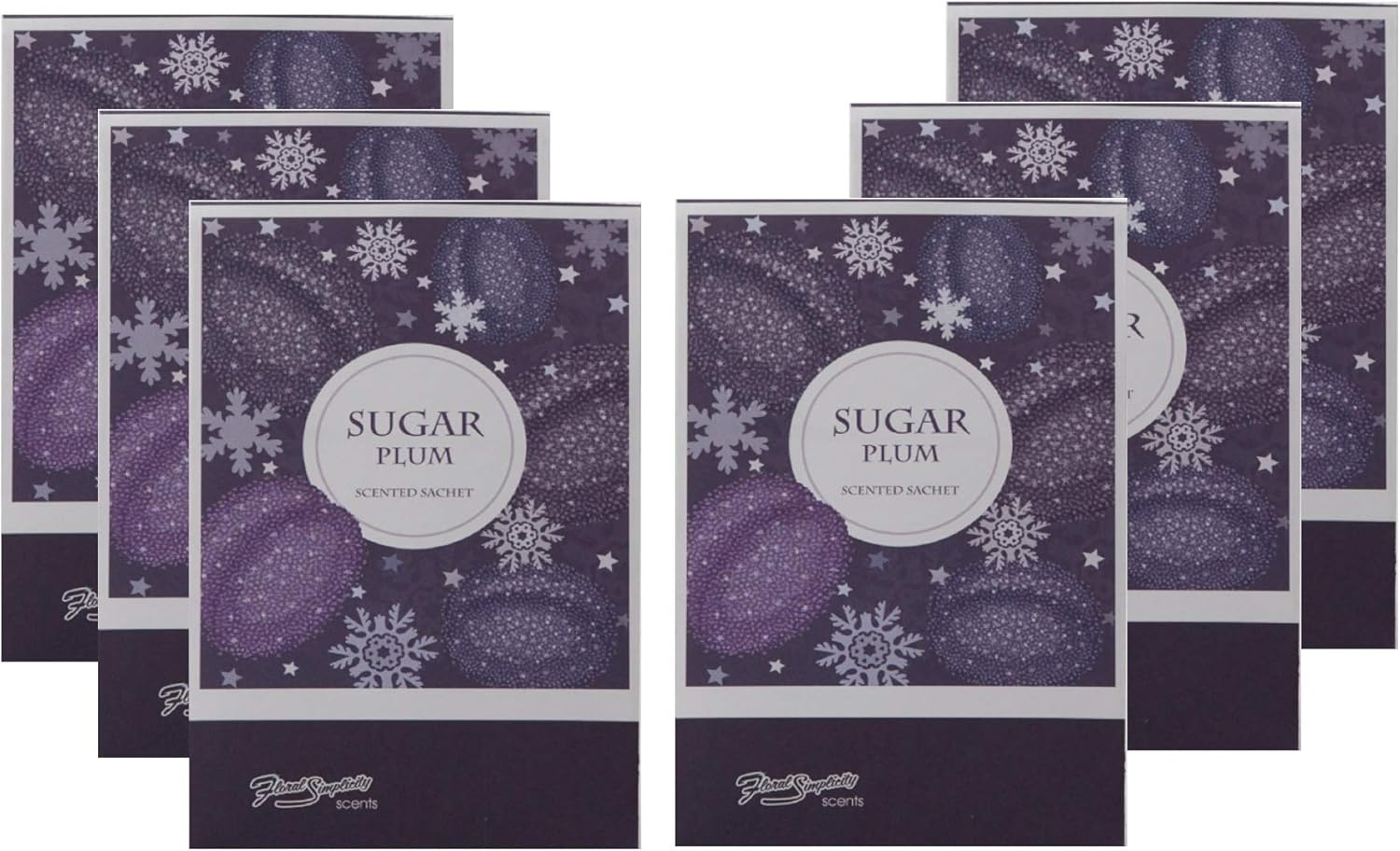 Floral Simplicity Sugar Plum Scented Sachets Pack of 3, Fall & Winter - Long-Lasting Scented Bags, Home Fragrance, Air Freshener & Deodorizer for Closet, Room, Drawer, or Cars, Made in USA