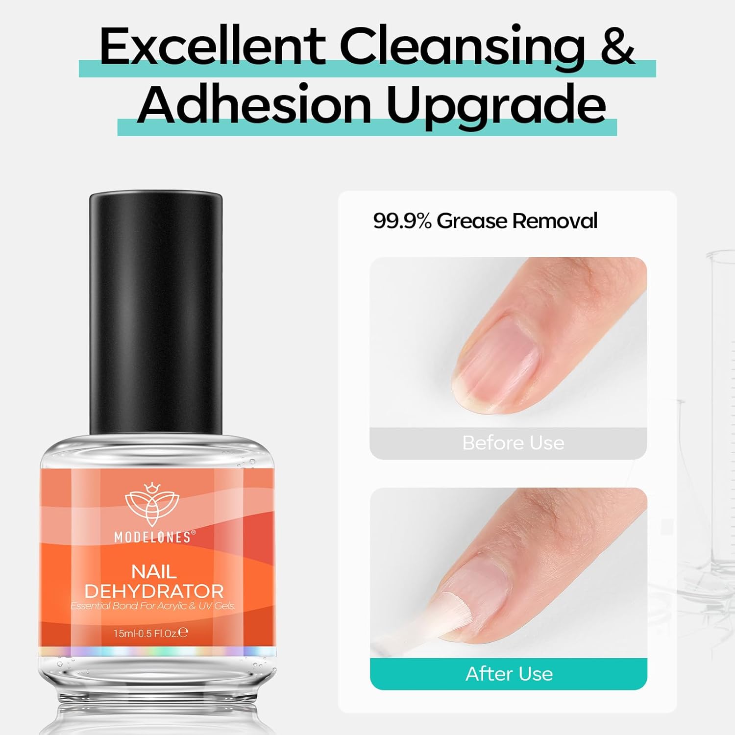 modelones Nail Dehydrator, 15 ml Acid Free Nail Prep Dehydrator for Press Ons/Acrylic Nails/Gel Nail Polish, Hema-Free Primer Bonder