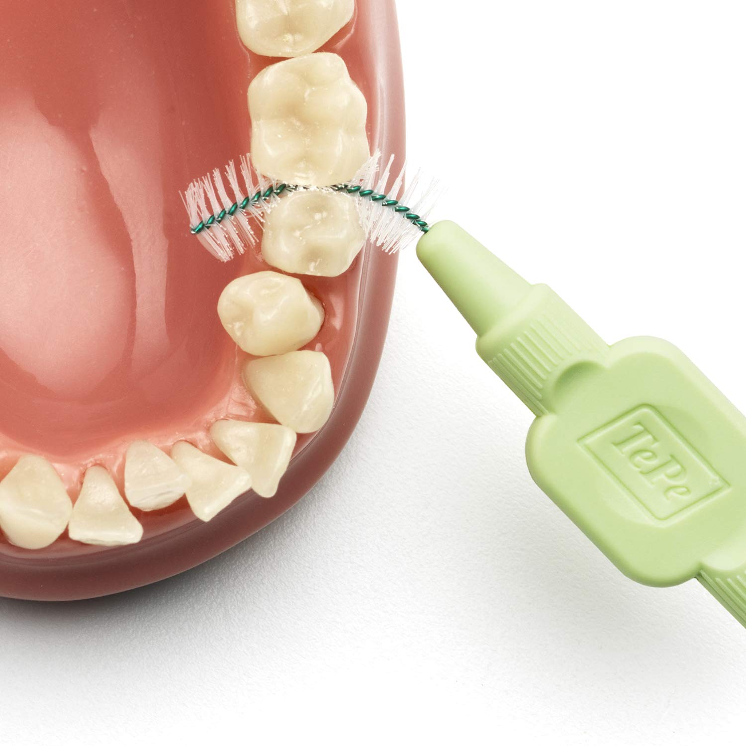 TePe Interdental Brush Extra Soft, Supersoft Dental Brush for Teeth Cleaning, Pack of 8, 0.8 mm, Large Gaps, Green, Size 5