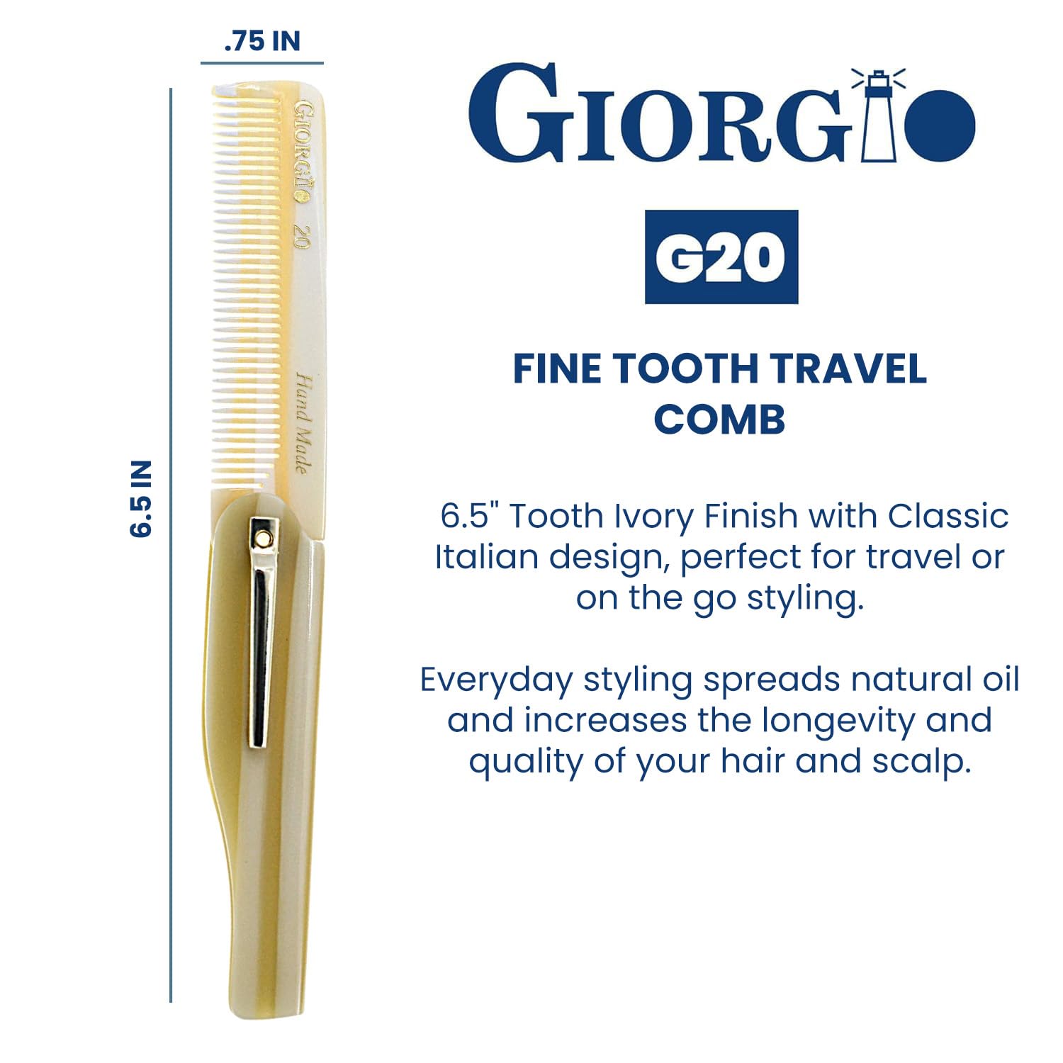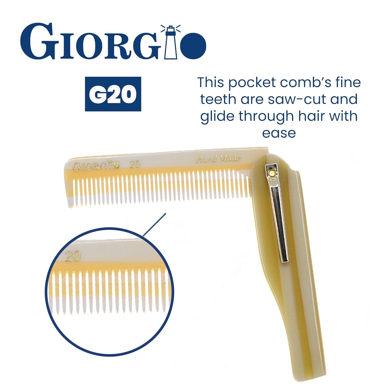 Giorgio G20 Folding Fine Tooth Mustache and Beard Comb 6.5 Inches - Sawcut and Hand Polished Ivory Styling and Travel Comb for Everyday Hair Care (Ivory)