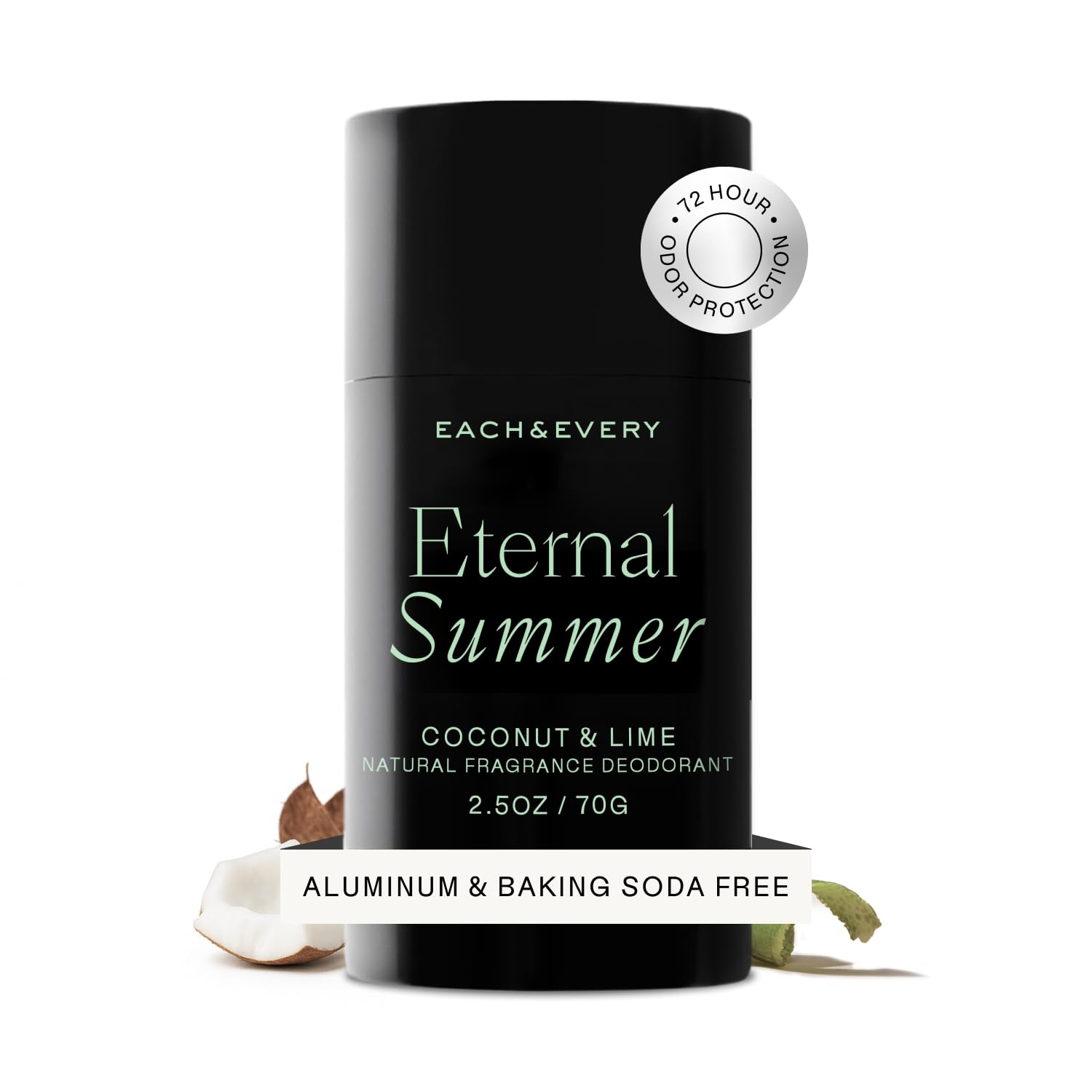 Each & Every Aluminum Free Deodorant for Men & Women - All Natural Deodorant for Sensitive Skin, EWG Verified - Clean, Baking Soda-Free, Plant-Based Fragrance, Coconut & Lime, 2.5oz