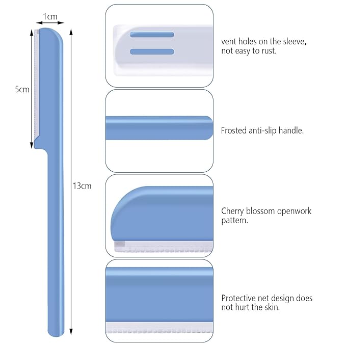 - Notice: the blue eyebrow razors are with protective net suitable for the green hand, while the rose red hair removers without protective net are suitable for the professional