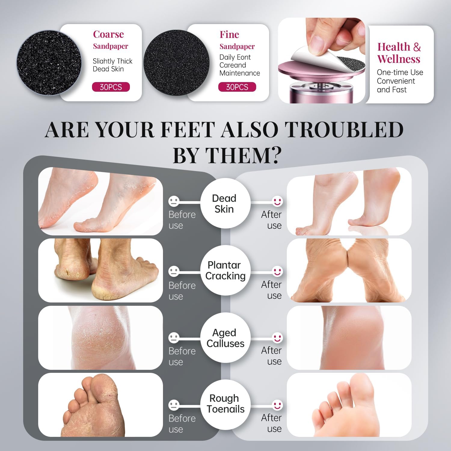 - 【Two Types of Sandpaper】: Electric Foot Callus Remover Can be rotated 360 degrees to remove cracked heels, dryness, dead skin and calluses. Gently does not hurt the skin.The set includes two types of sandpaper, you can choose according to your own situation, it is easier to remove dead skin!