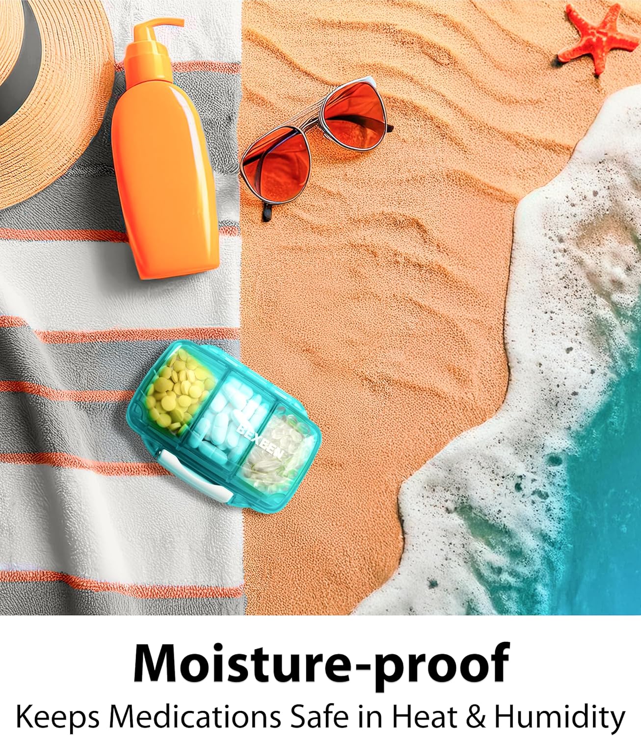- Lightweight and Compact – Whether you're hiking in Texas, relaxing on California's beaches, or soaking in the tropical beauty of Florida, this travel pill container won't take up much space. Easily bring your medications along without any extra burden
