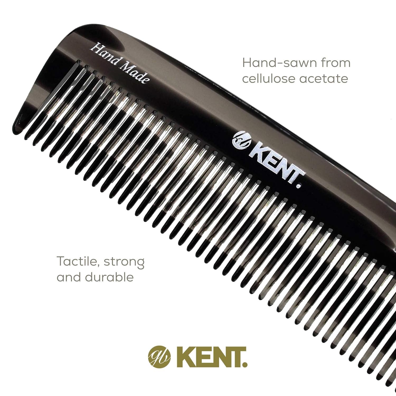 Kent 12T Black Graphite Pocket Comb - Handmade Wide Tooth Hair Comb for Men, Women, and Kids - Travel, Beard, and Mustache Comb - Saw Cut and Hand Polished Made in England