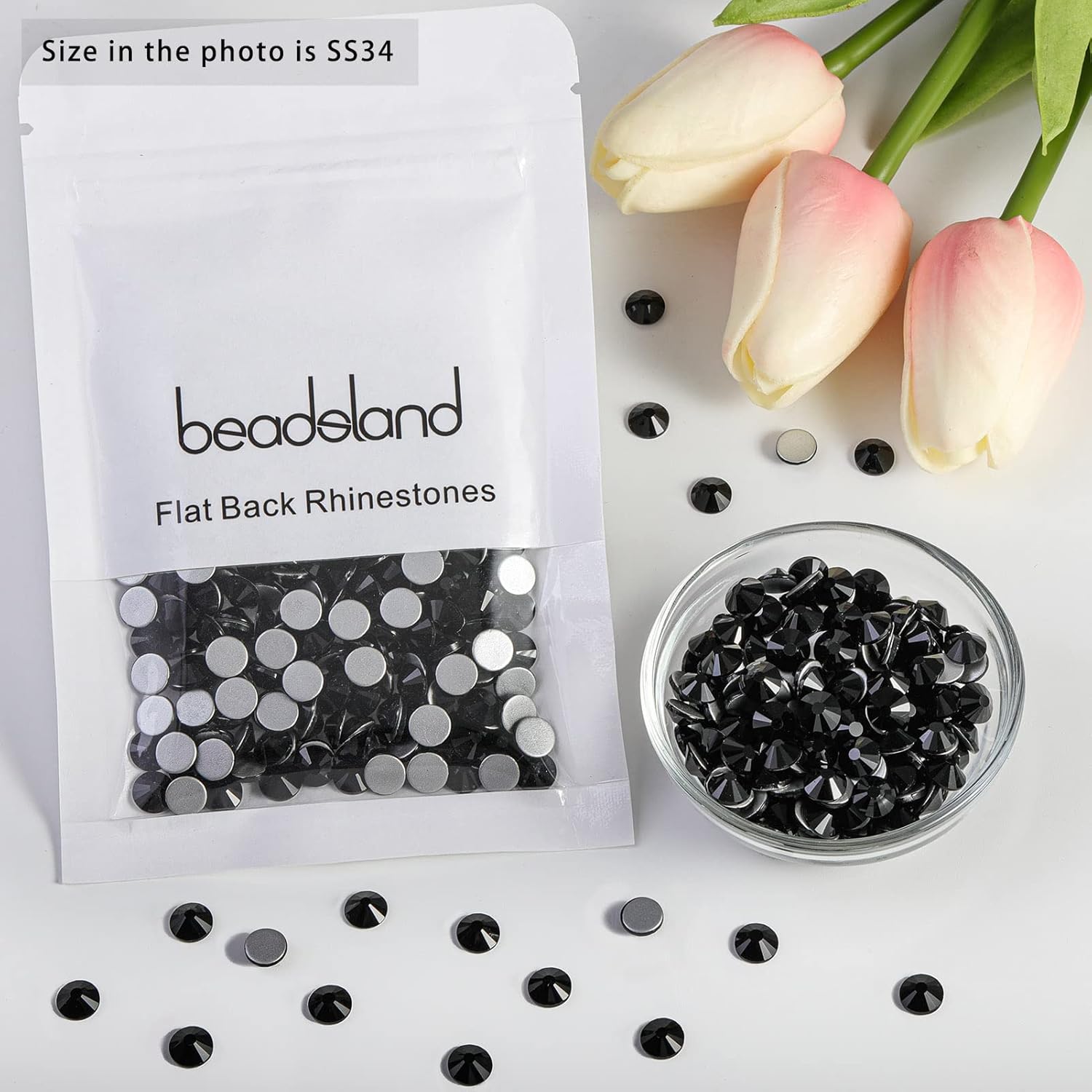 beadsland Flat Back Crystal Rhinestones Round Gems, Black(7.1-7.3mm) SS34/288pcs